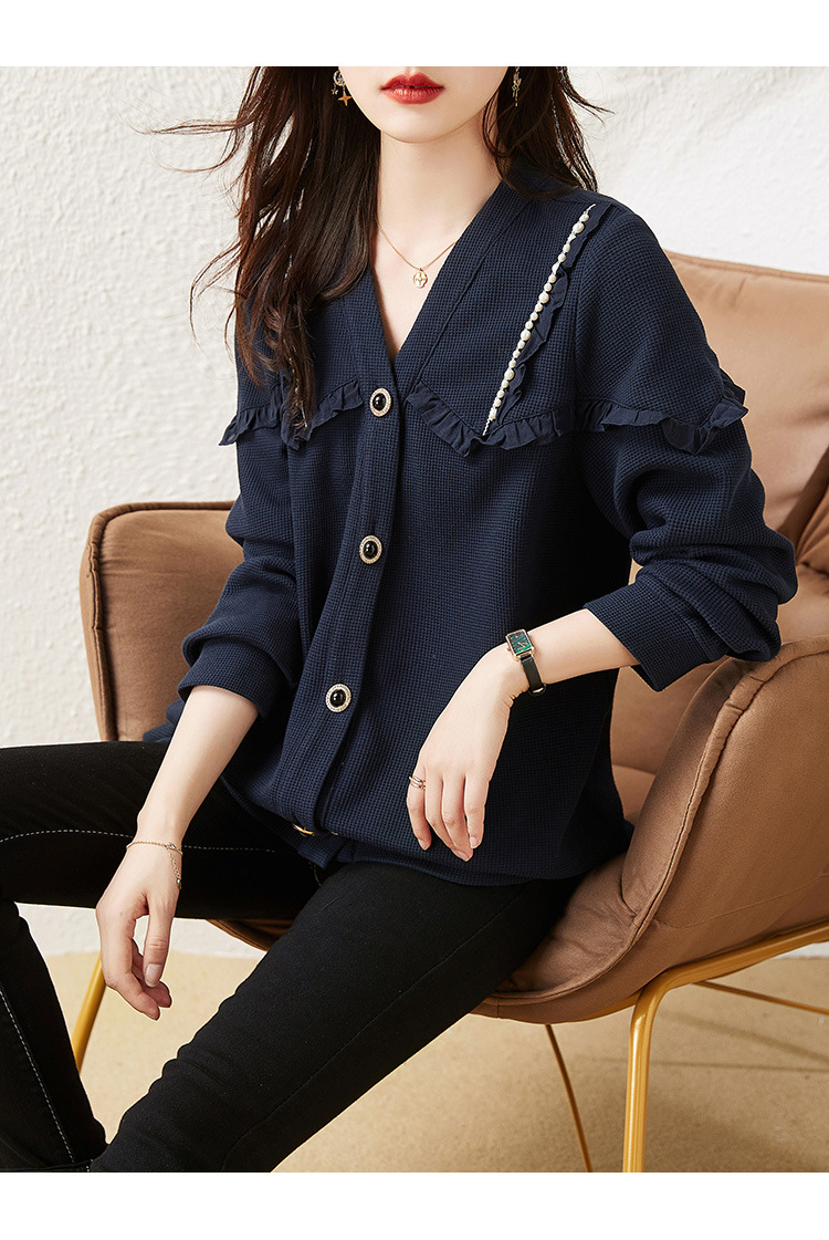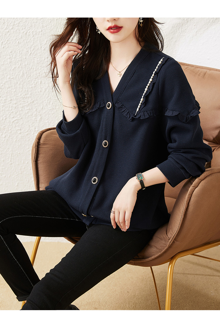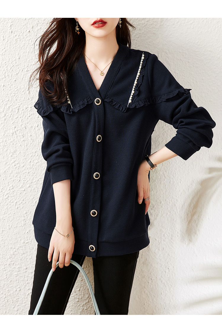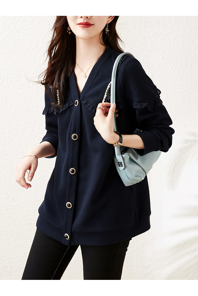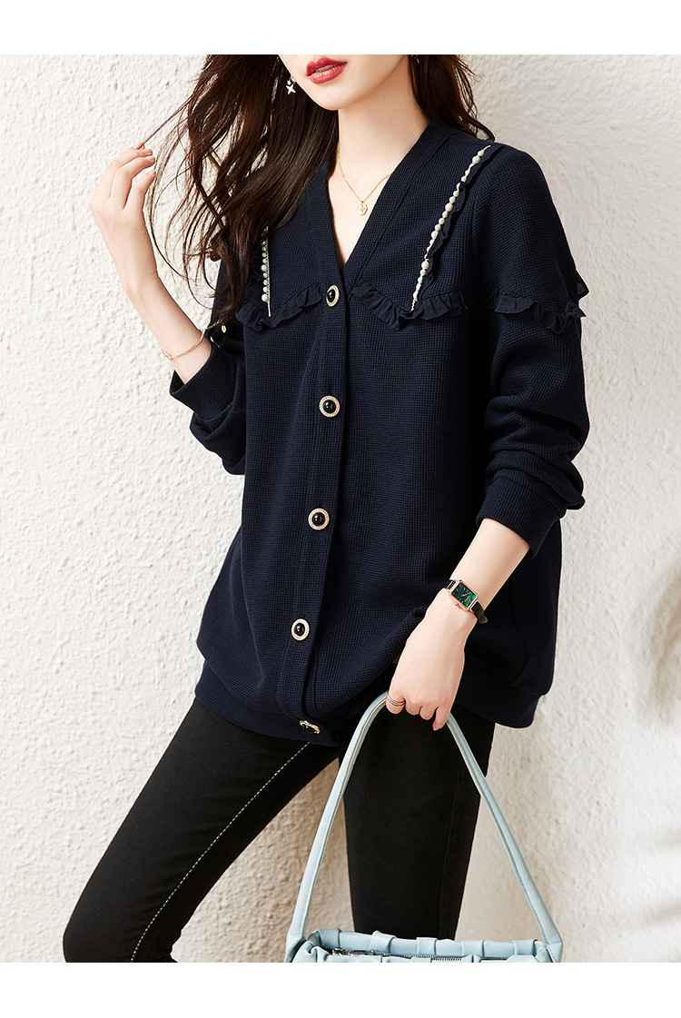 2025年秋の新作プラスサイズジャケット、パールチェーントリム付き、ゆったりとした太った女の子向けの女性服の実物写真