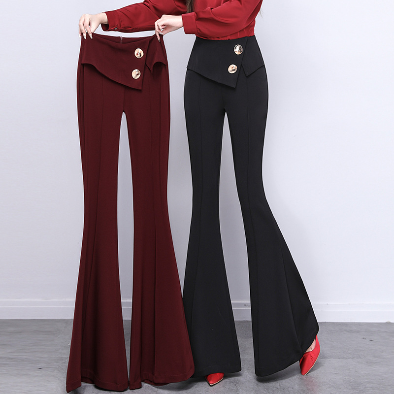 2025年秋入荷、実物撮影。フィッシュテールロングパンツ、女性用、香港風ファッション、ハイウエスト、フレアパンツ、レトロカジュアルパンツ