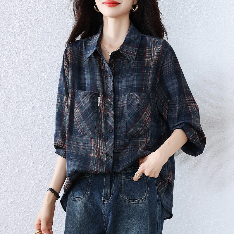 衬衫女秋季新款洋气女士上档次格子长袖打底衬衣