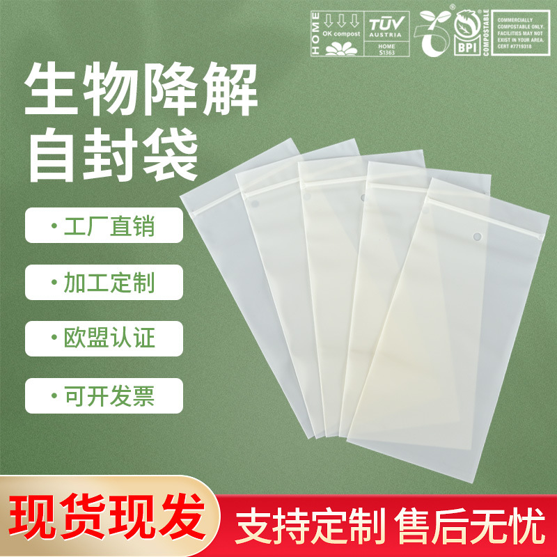 环保全生物降解贴骨袋 PLA可堆肥服装饰品包装袋 可降解自封袋 PBAT 可堆肥 服装自封袋 密封降解 全降解骨条袋 手提 跨境 出口 亚马逊降解