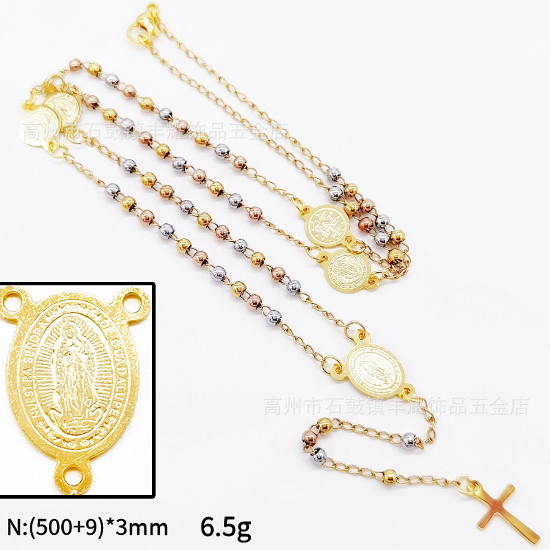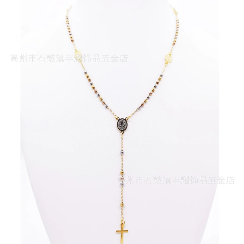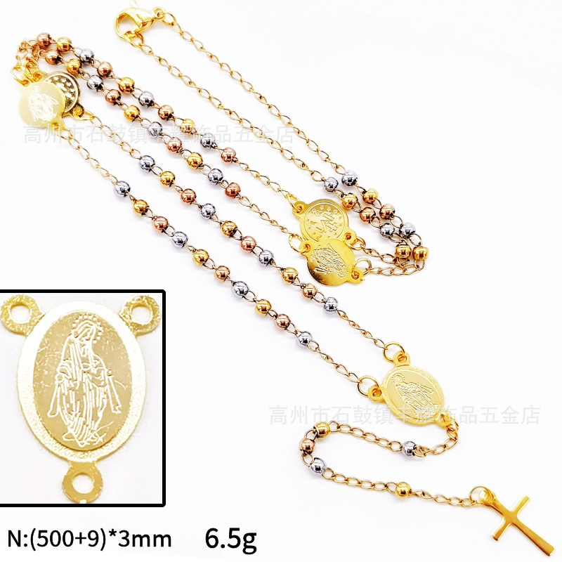 欧美风西方宗教图腾不锈钢项链圣母玛利亚圆珠项链复古十字架项链