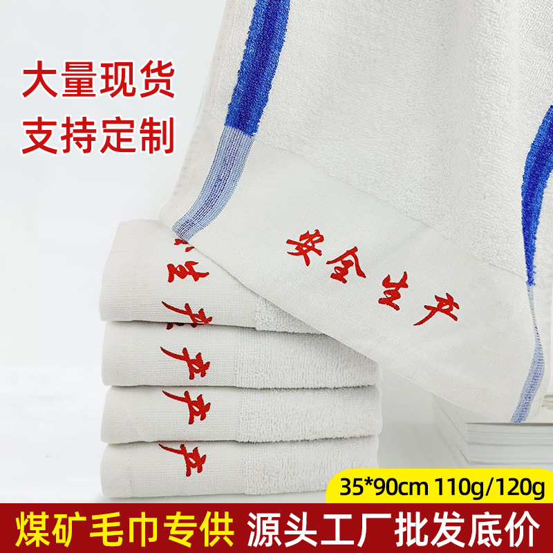 炭鉱タオル卸売り35*90労働者福祉青白条毛色織りタオルロゴカスタマイズ