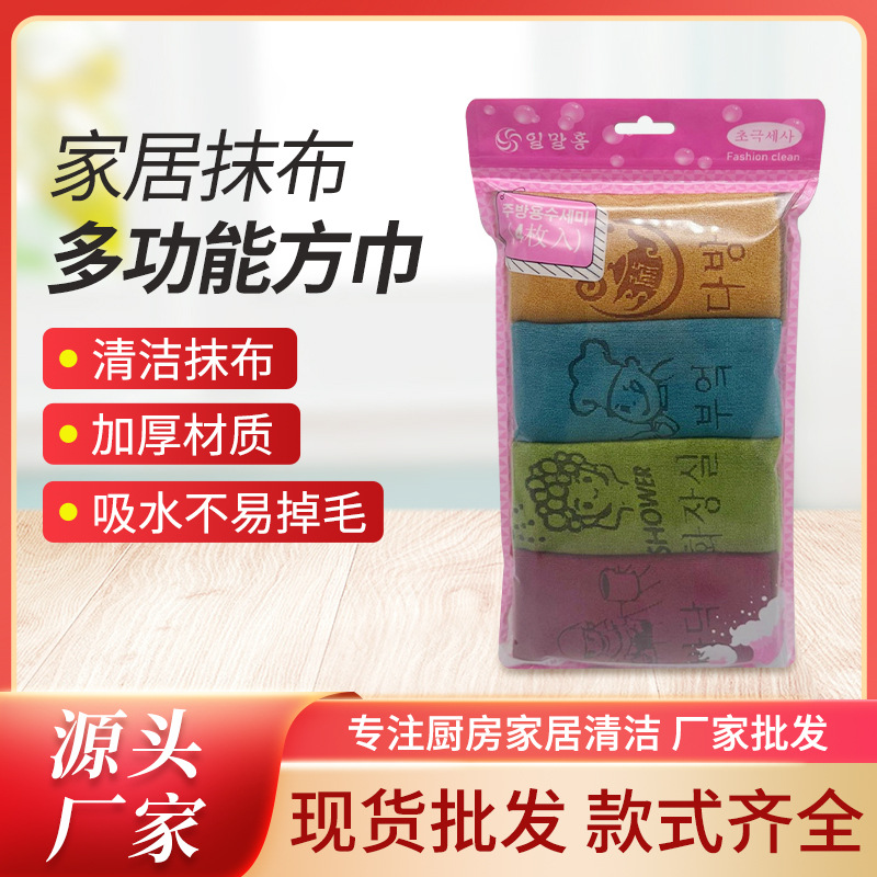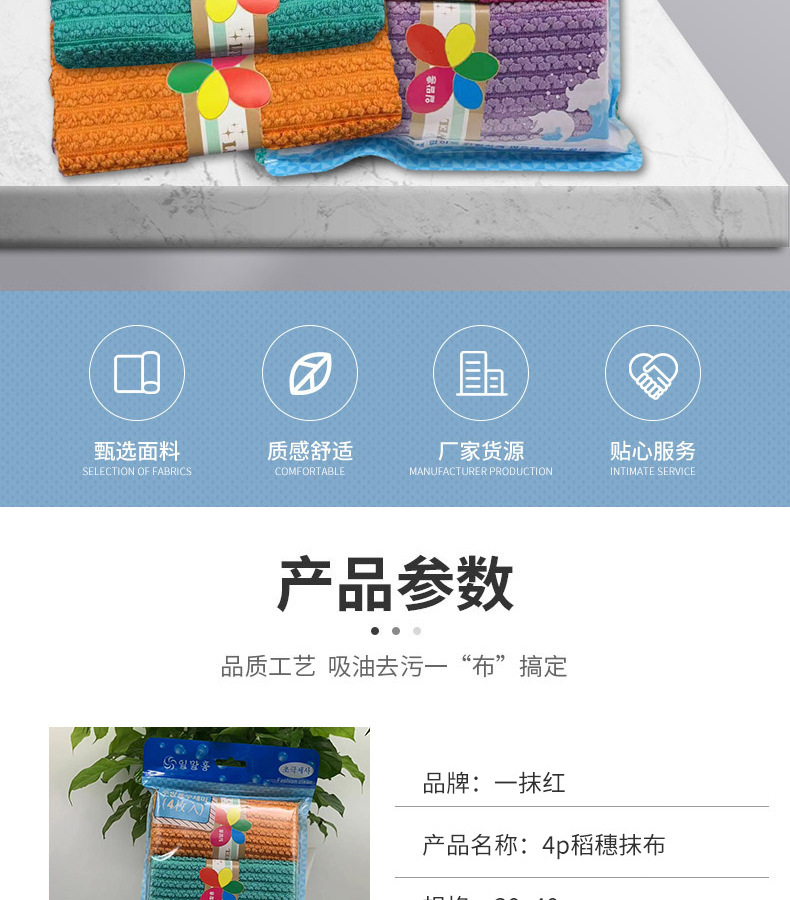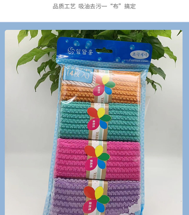 韓国版稲穂雑巾4pは二重に厚くした皿洗い雑巾を掛けて家庭の除塵台所の清潔な吸水雑巾を包む