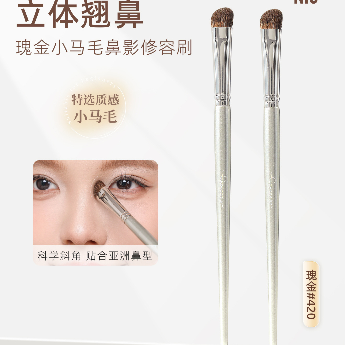 郭小妞瑰金鼻影刷马毛斜头精准修容刷动物指腹山根鼻翼阴影化妆刷