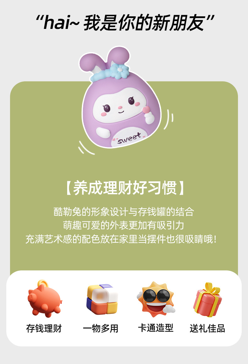 露露うさぎ貯金箱かわいい創意的なエナメルは転んでも保存できます。貯金箱子供のおもちゃの祝日プレゼントをもらえます。