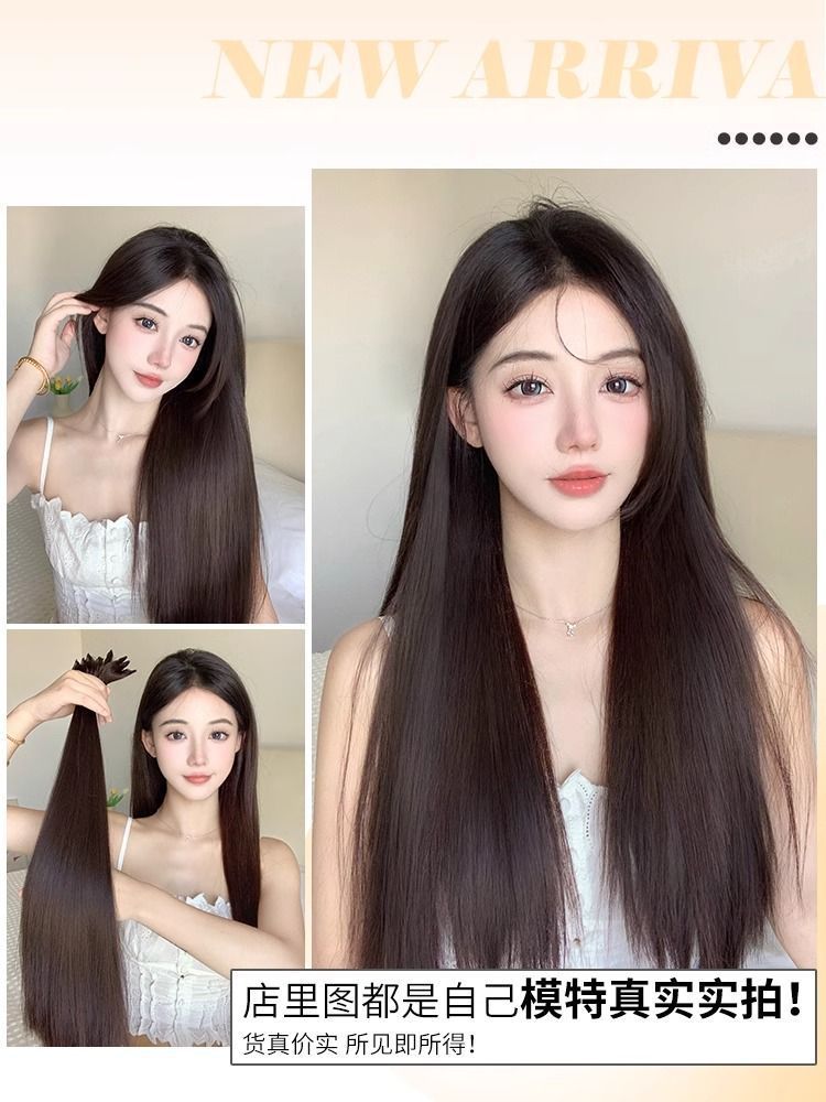 ロングヘアーの女性用ウィッグピース、5つのカード、ワンピースの目に見えない跡のない人工毛、髪のボリュームを増やす、ふわふわのストレートヘアエクステンションパッチ