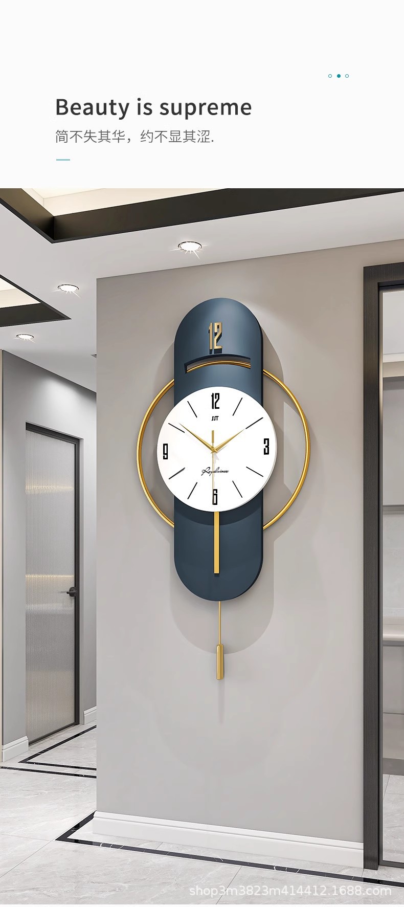 新しいスイング壁時計リビングルームの壁時計新しい時計壁掛けモダンシンプルクリエイティブな雰囲気ライト高級ホームミュート