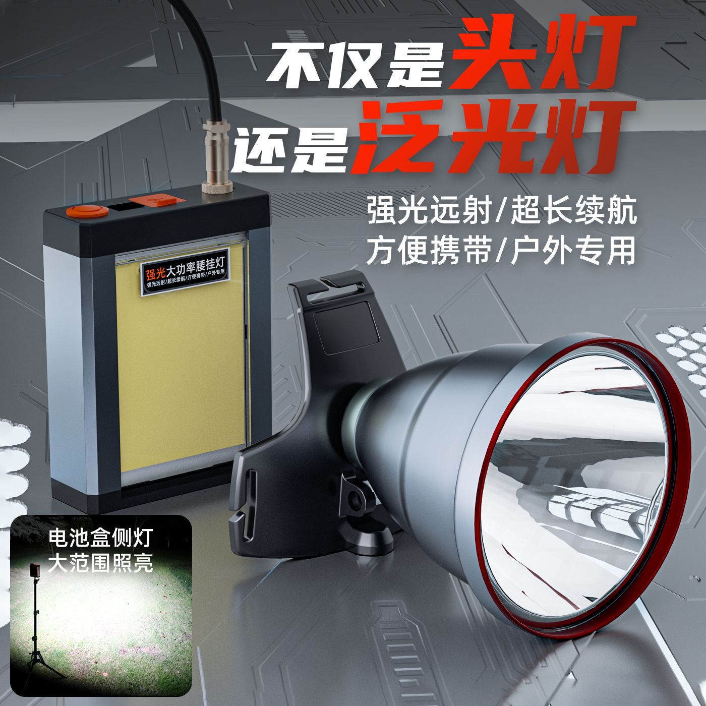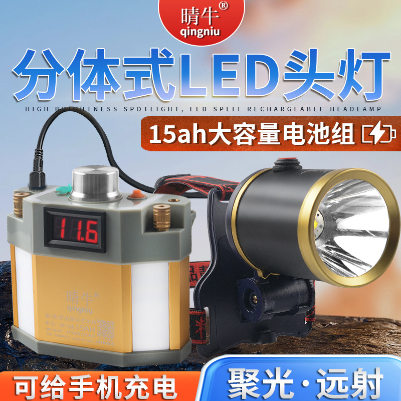 分体大容量強光遠射腰掛灯ヘッド装着式屋外遠射LED長航続充電探照鉱灯