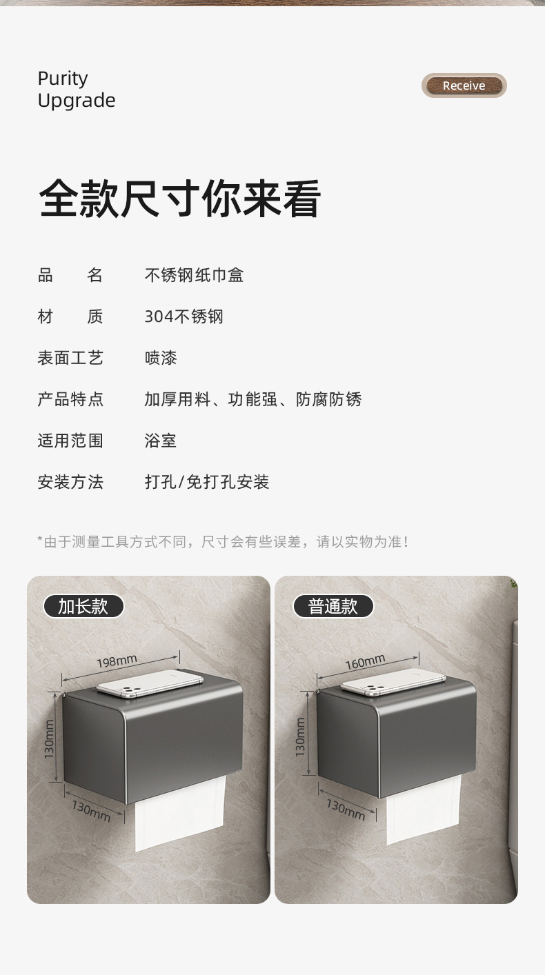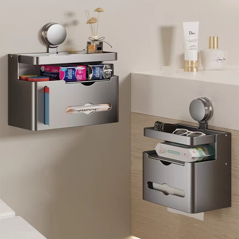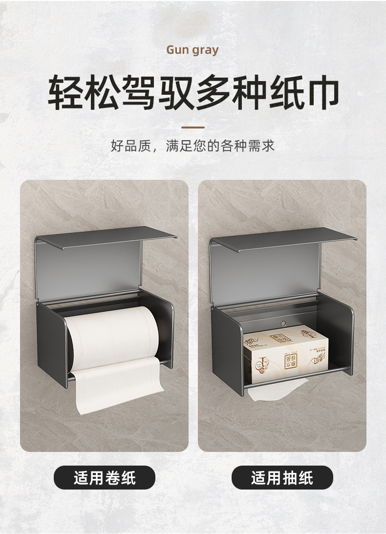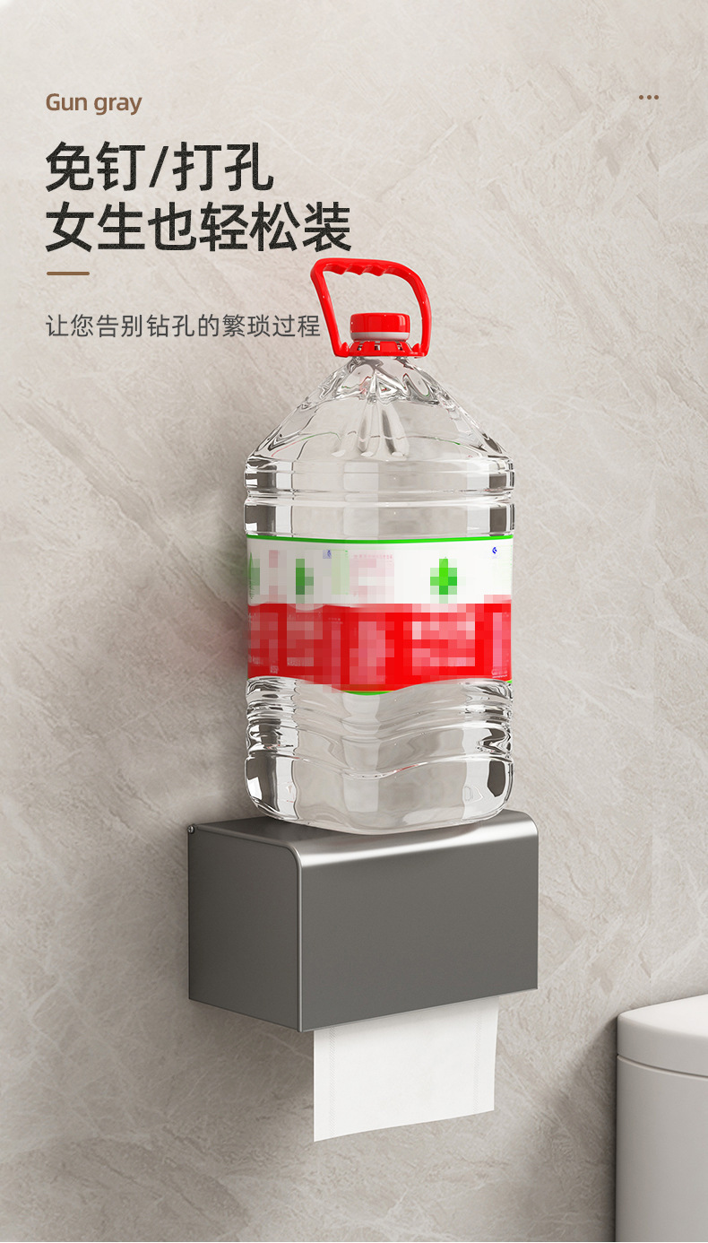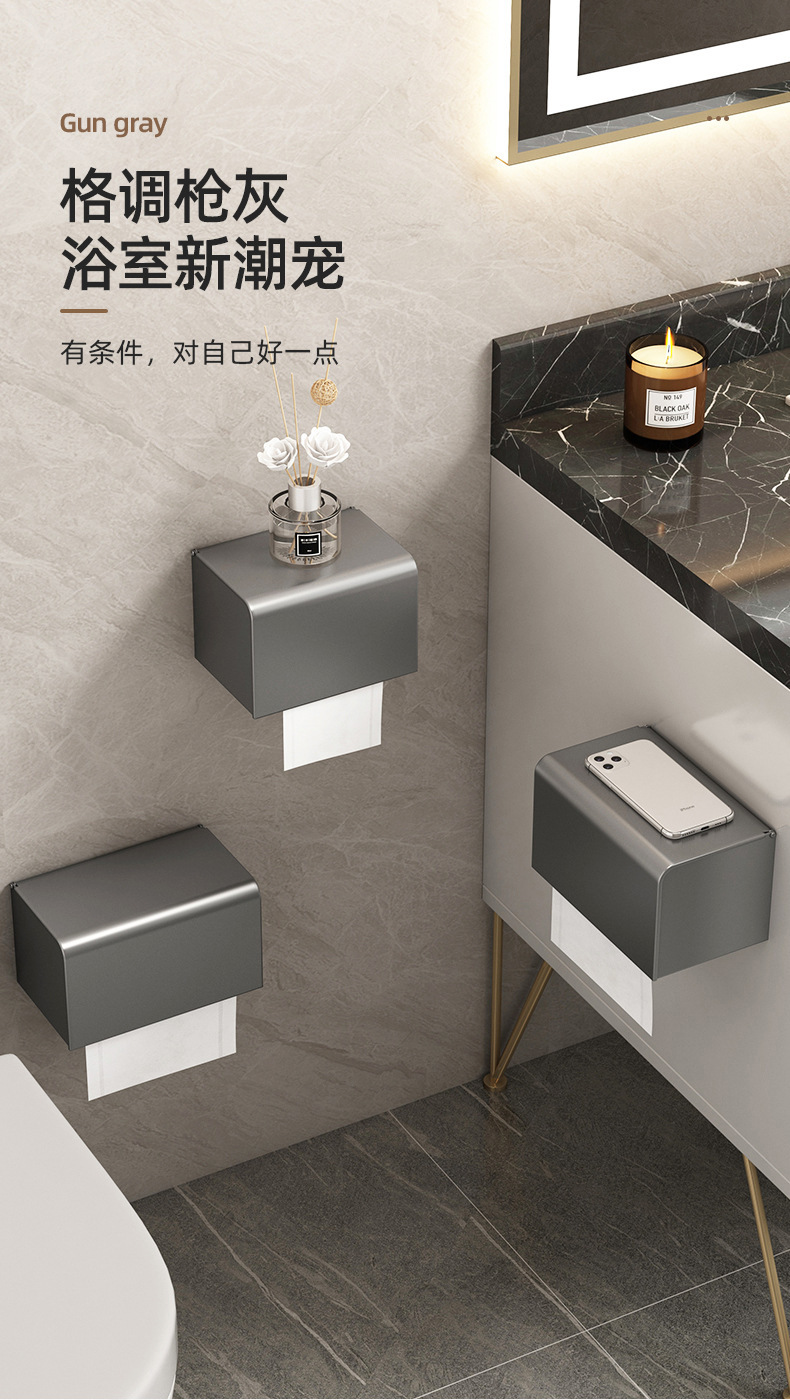 トイレティッシュボックスガン灰ラック穴なしトイレ防水ティッシュロール紙壁掛け式手洗いトイレットペーパーボックス
