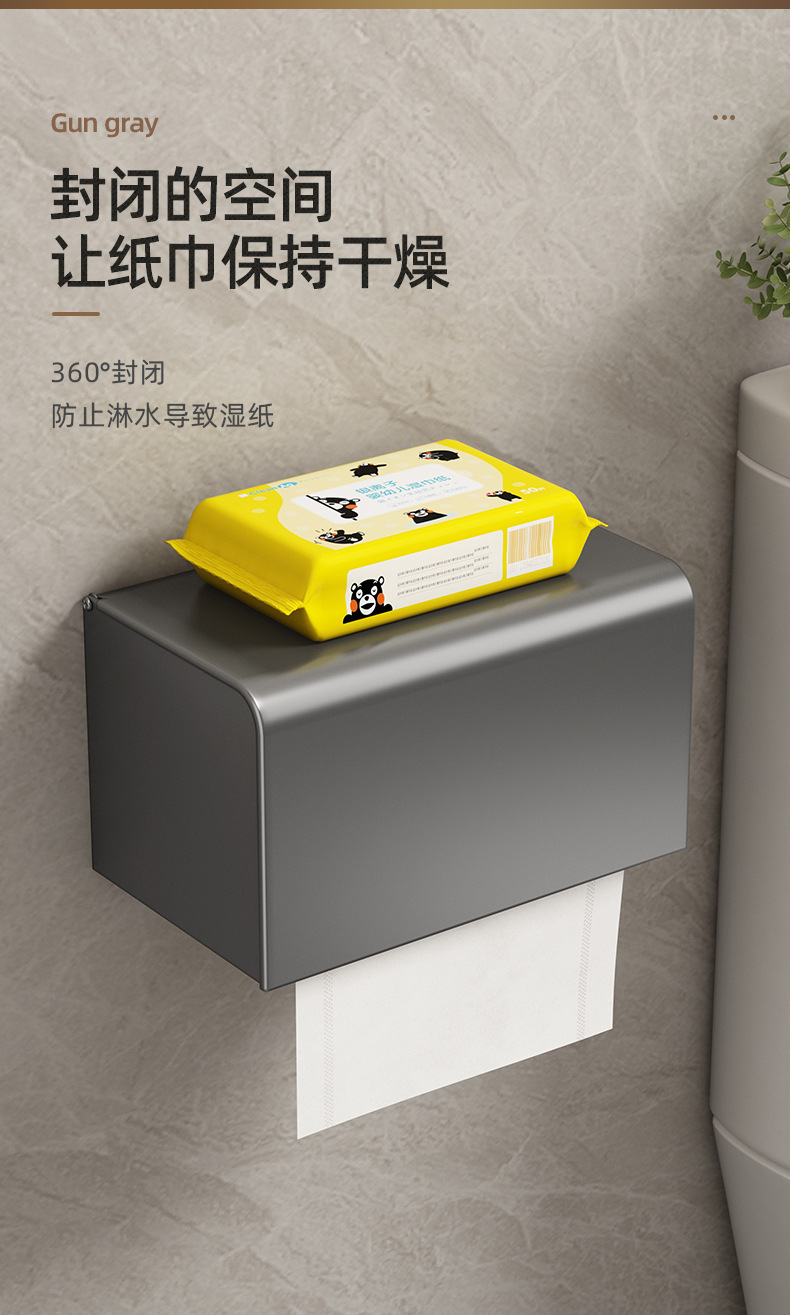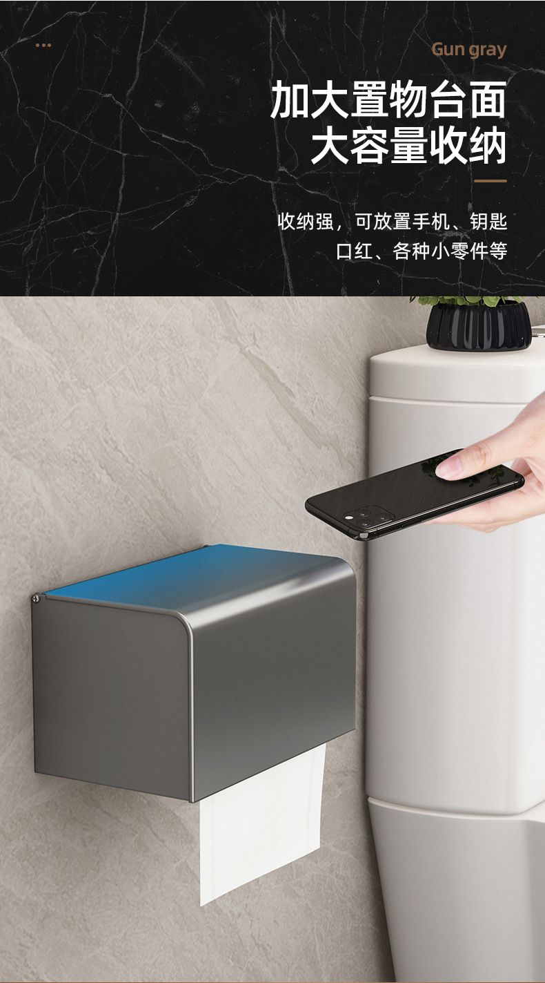 ガンメタルスペースアルミ製トイレットペーパーホルダー、穴あけ不要、防水ティッシュボックス、トイレットペーパーホルダー収納