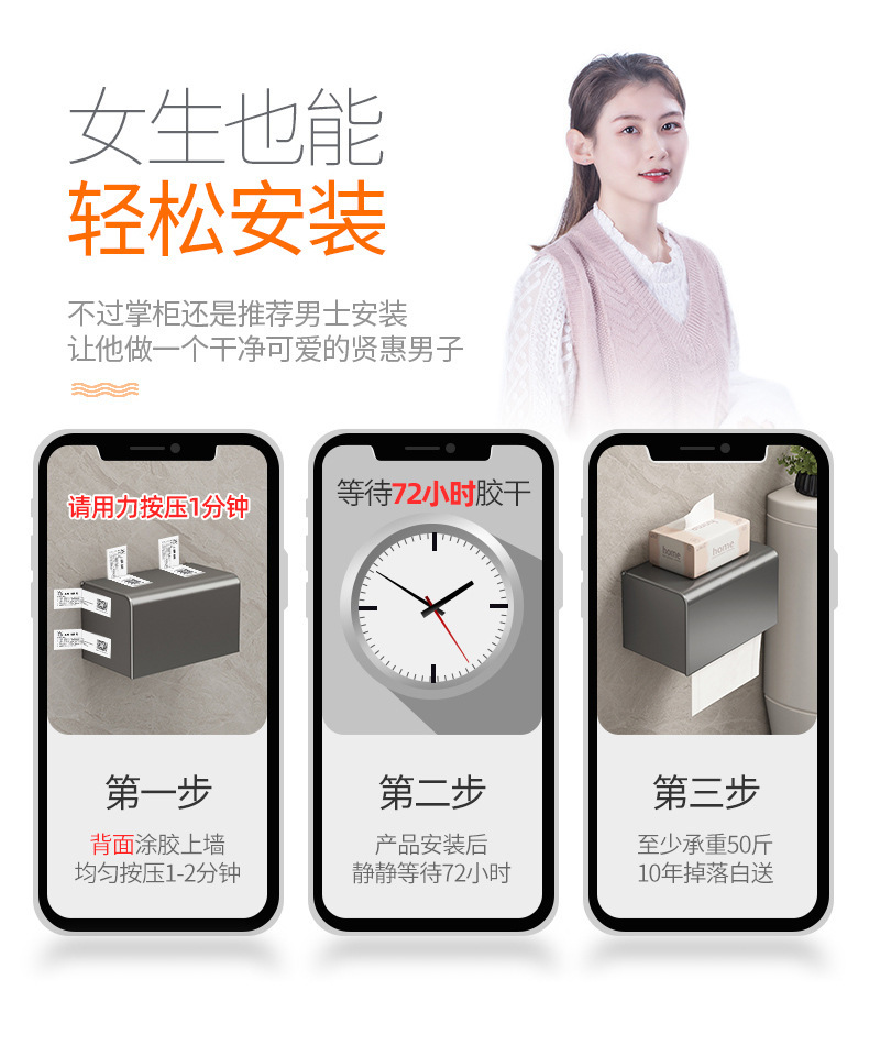 新款卫生间纸巾盒厕所卫生纸置物架壁挂式抽纸盒免打孔防水纸巾架