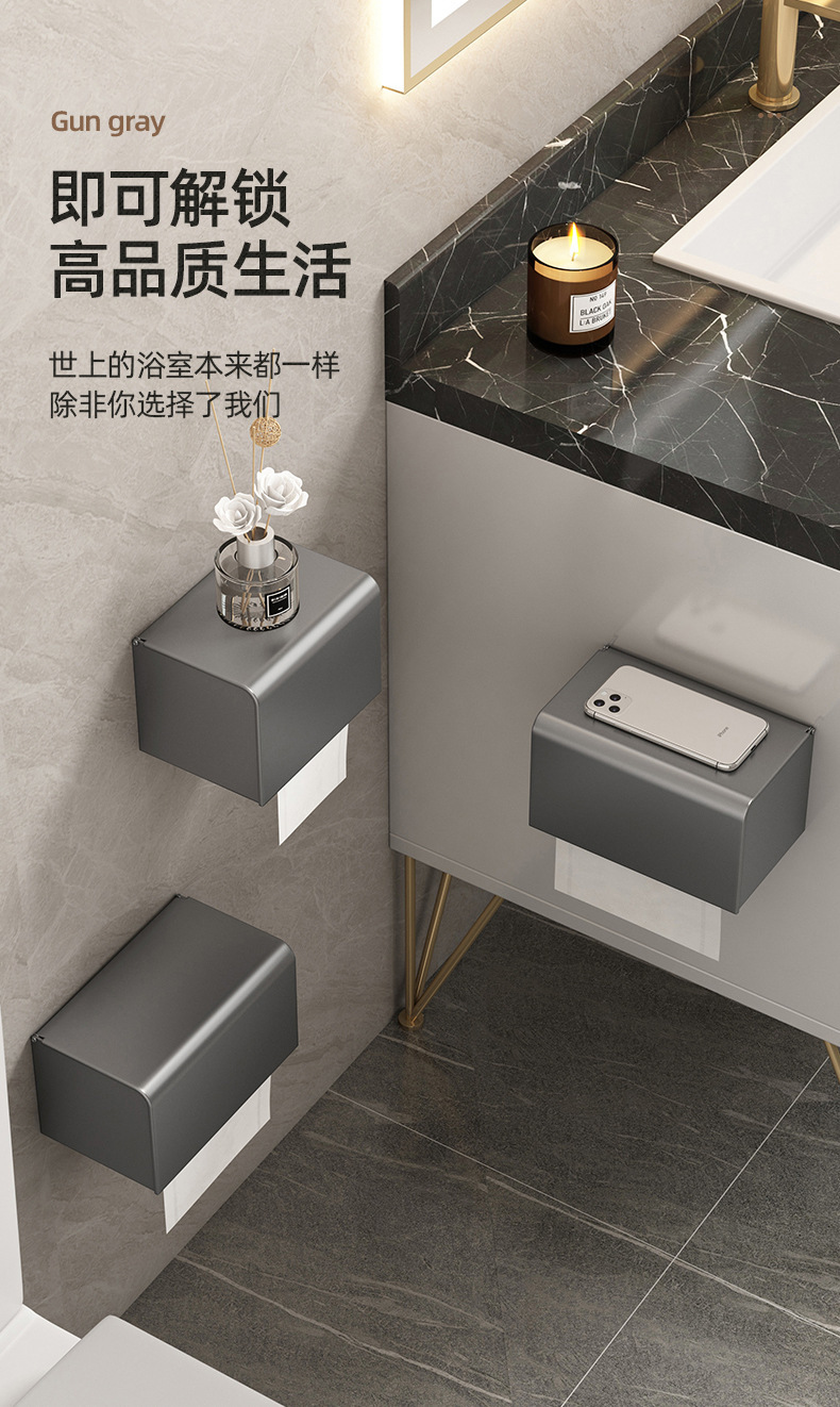 宇宙飛行アルミグレートイレティッシュボックス浴室用品ティッシュボックス防水穴なしトイレロール紙吸引ボックス