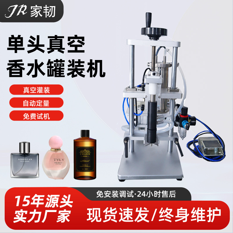 実験室シングルヘッド負圧真空車載香水缶設備小型半自動液体アロマ充填機