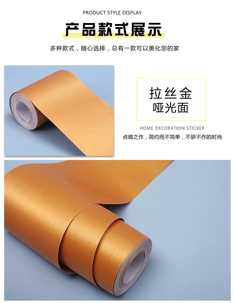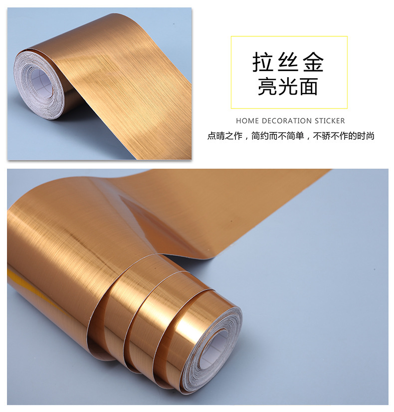 厚みのある粘着金属ブラッシュステッカーゴールデンフルフィルム改修防水冷蔵庫エアコン家具キャビネット装飾壁紙