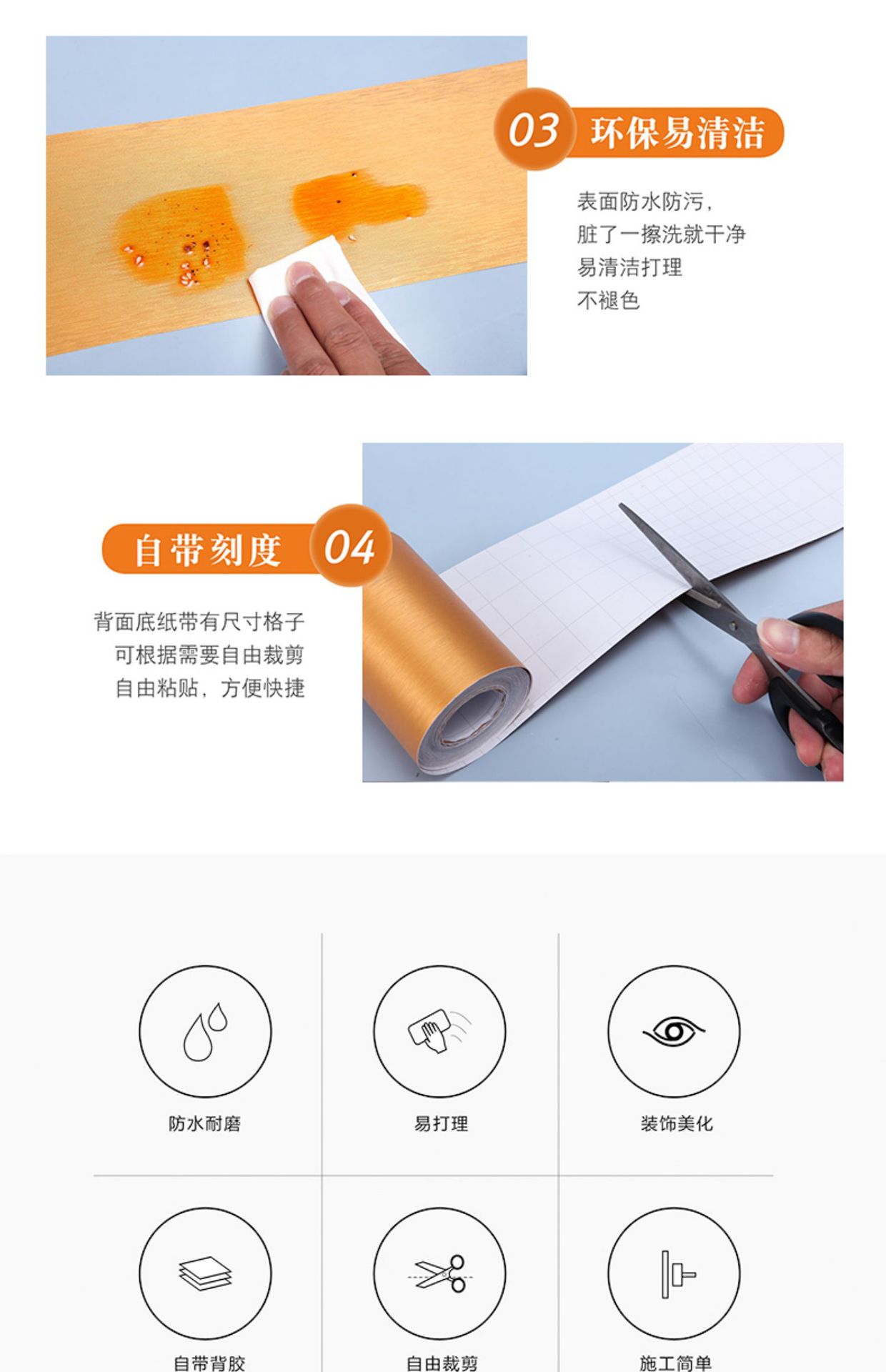 跨境新款加厚腰线踢脚线墙贴门框窗户防潮防霉美化线缝自粘墙纸