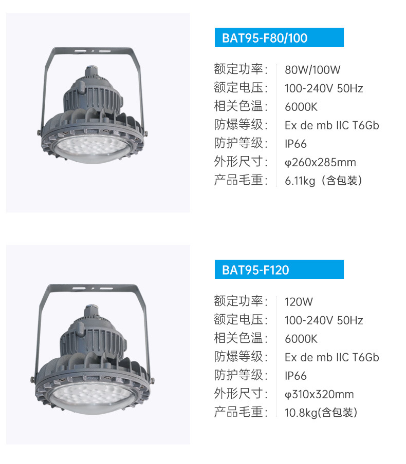 LED防爆灯工場工場化学工業倉庫工場ガソリンスタンド防水放熱led防爆灯BAT95-F