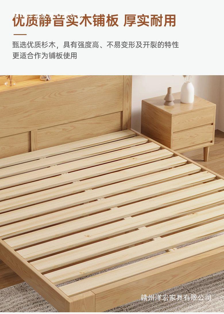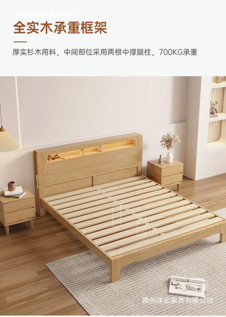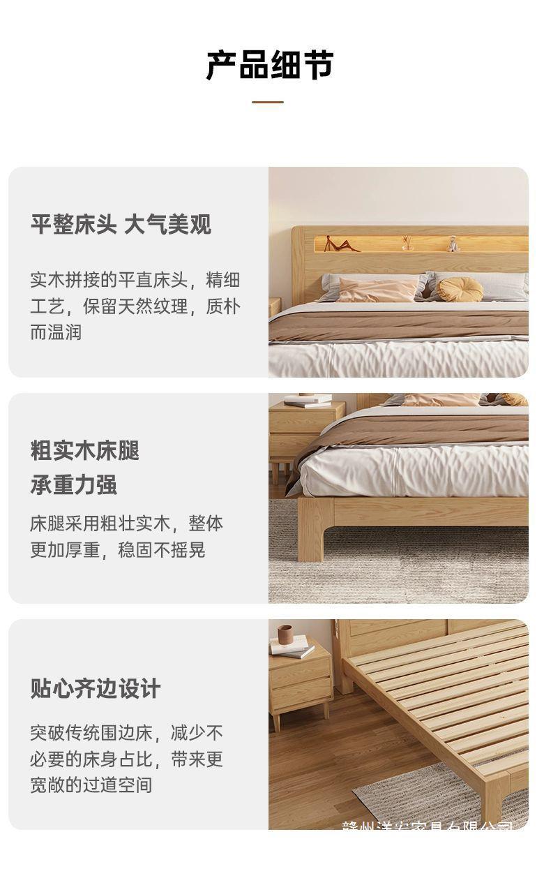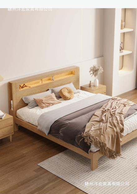 北欧実木ベッド1.8メートルダブルベッド1.5m夜灯付き主寝ベッドシンプルな賃貸住宅の小戸型1.2メートルベッド