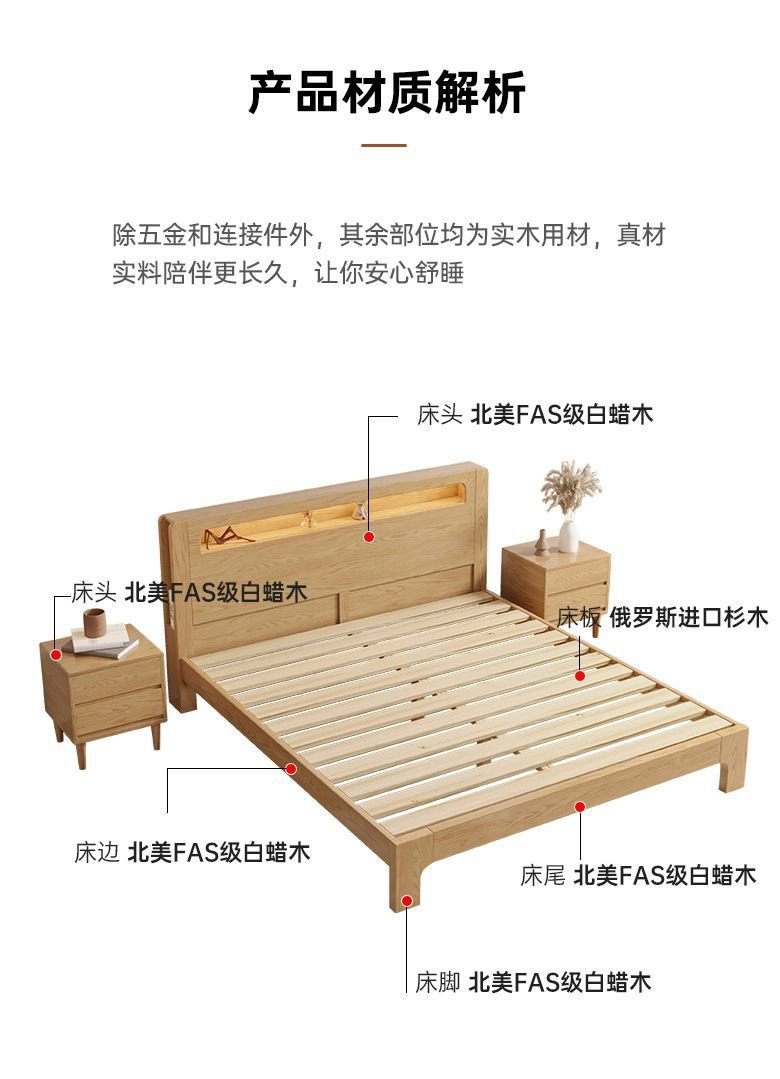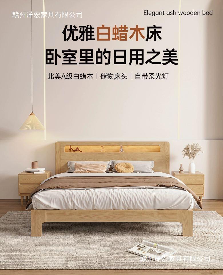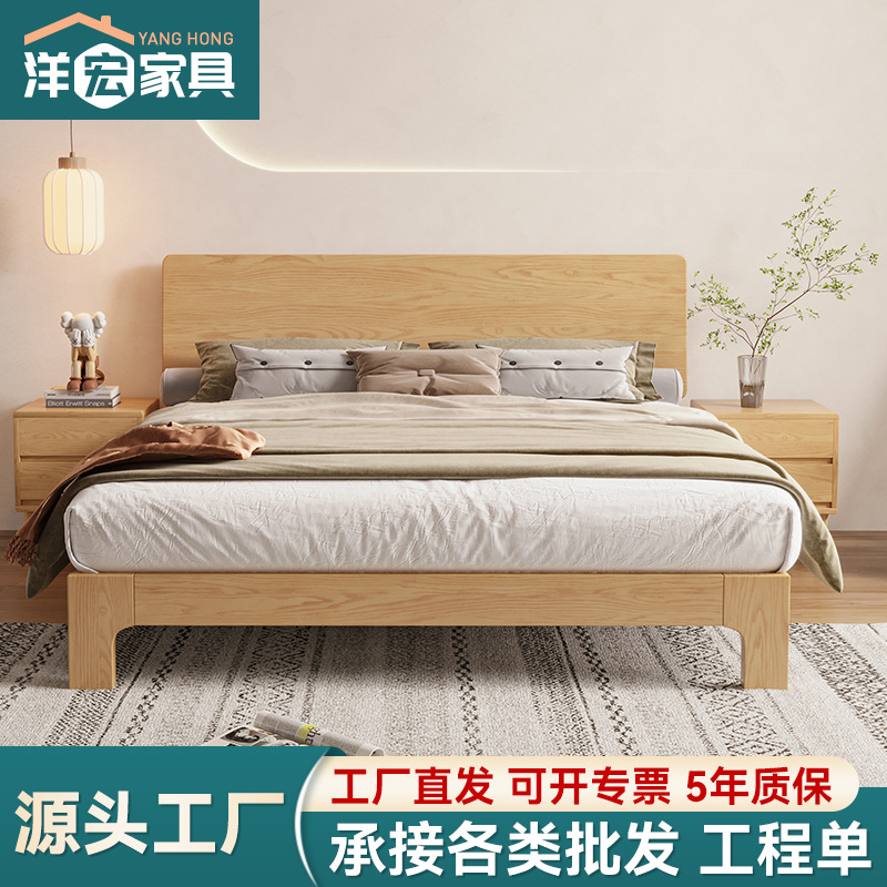 北欧白蝋木実木ベッド家庭用1.8メートル二人結婚ベッド現代シンプル1.5メートル主寝室シングルベッド