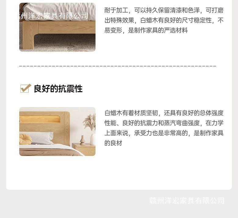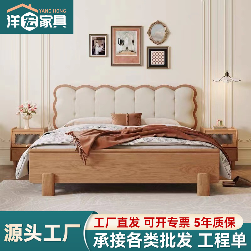 白蝋木実木ベッド中古風1.8メートルシングルベッド主臥家庭用1.5メートルクリーム風柔らかい結婚ベッド