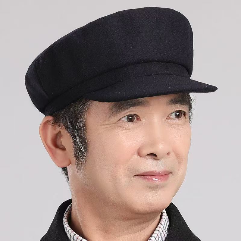 中老年毛呢平顶帽2025秋冬新款男士帽子加厚前进帽防寒保暖送爸爸