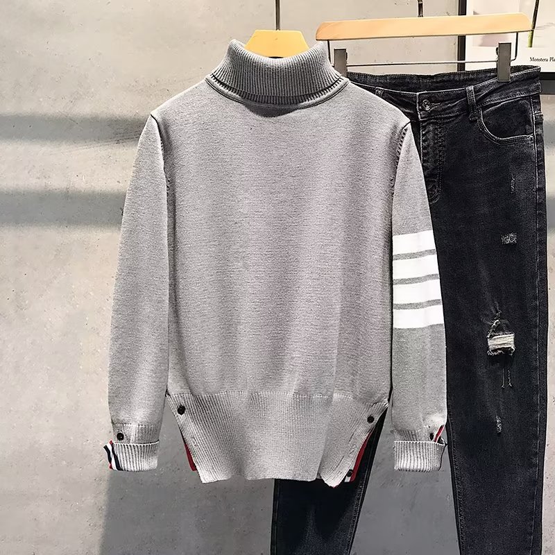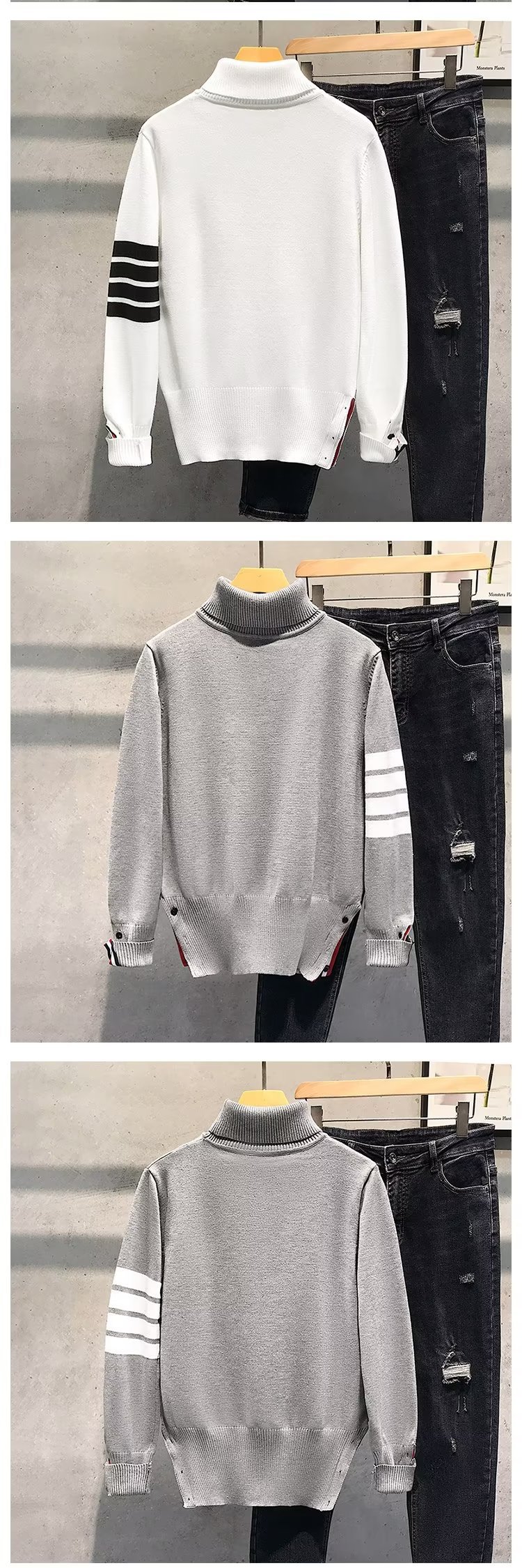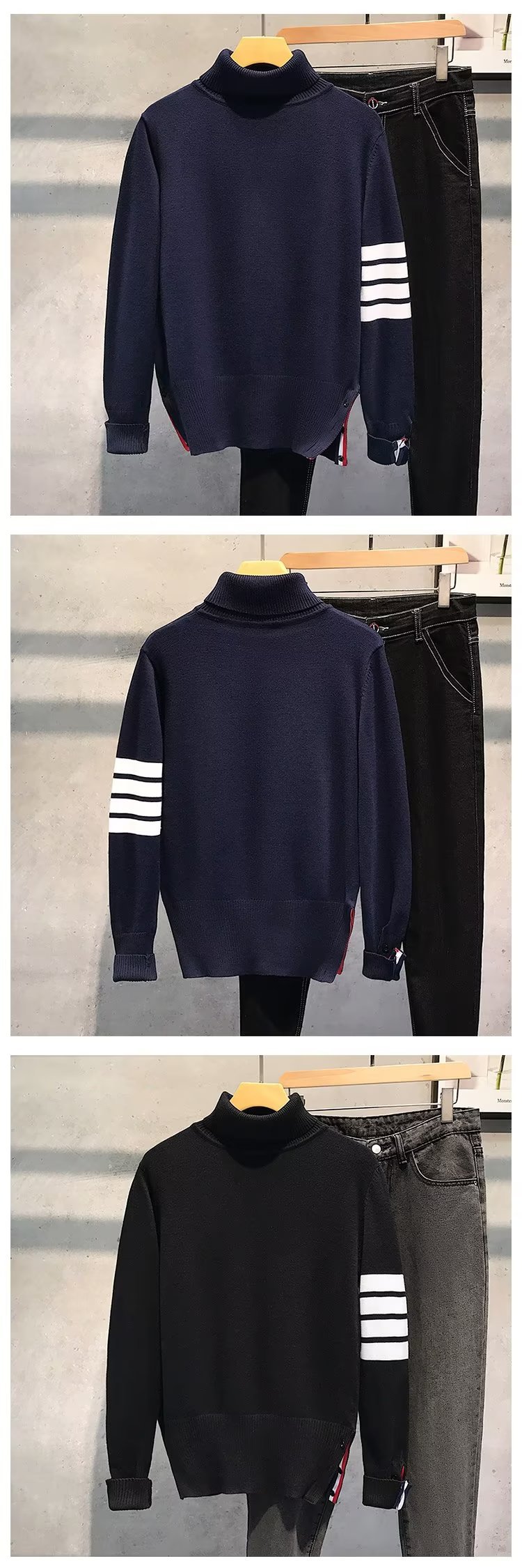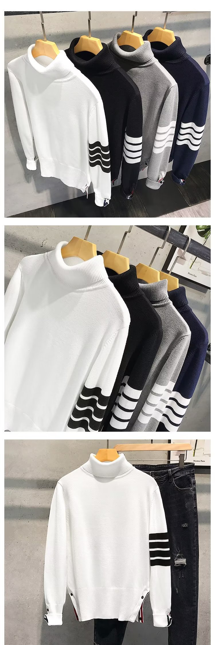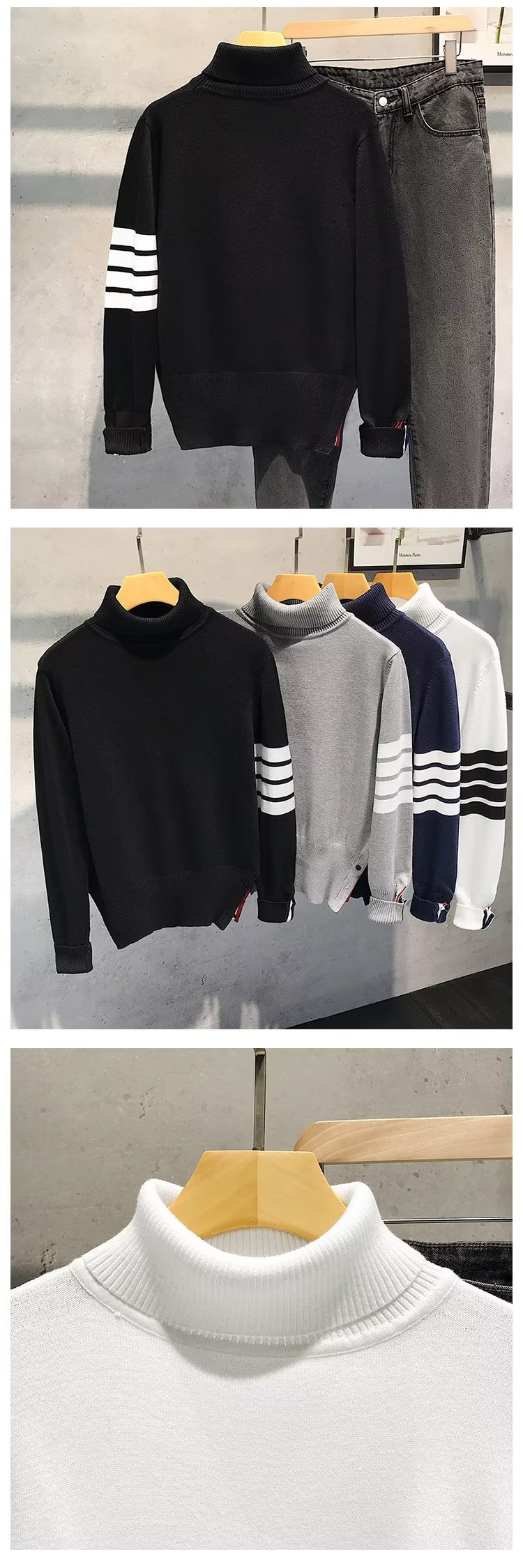 トレンドカジュアル男性気質シンプルニットの新しい4本の鉄棒高襟セーター秋冬長袖快適タイプ