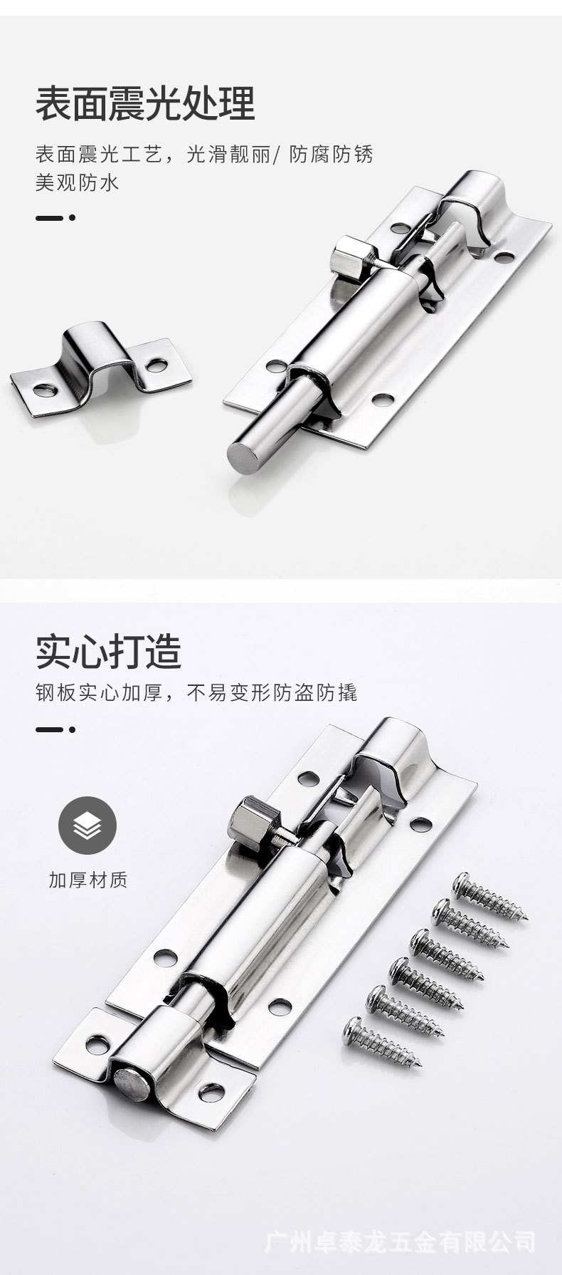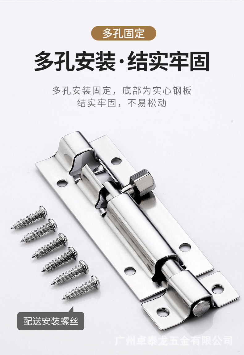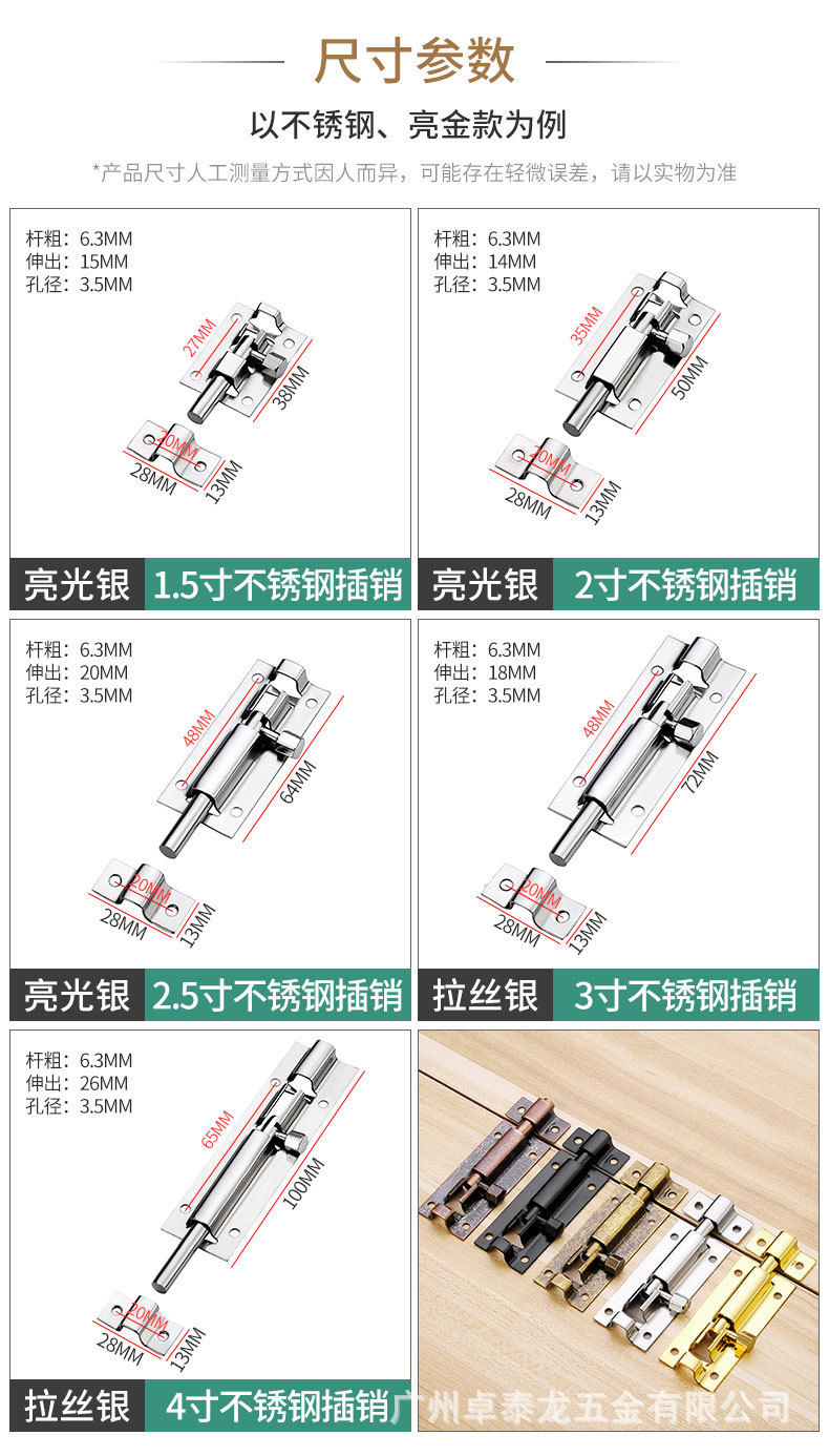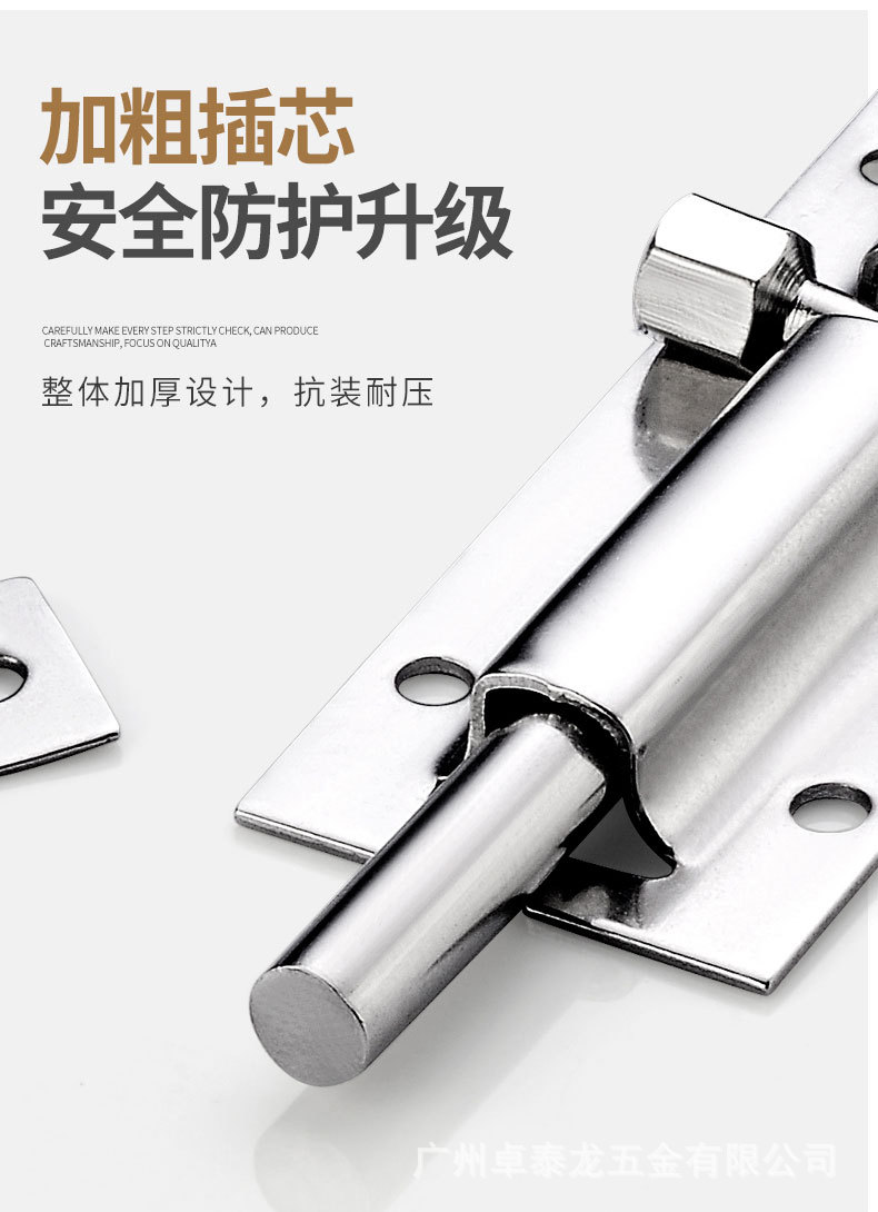1寸6寸不锈钢木门窗防盗插销锁加厚明装老式门小方不锈钢插销门栓