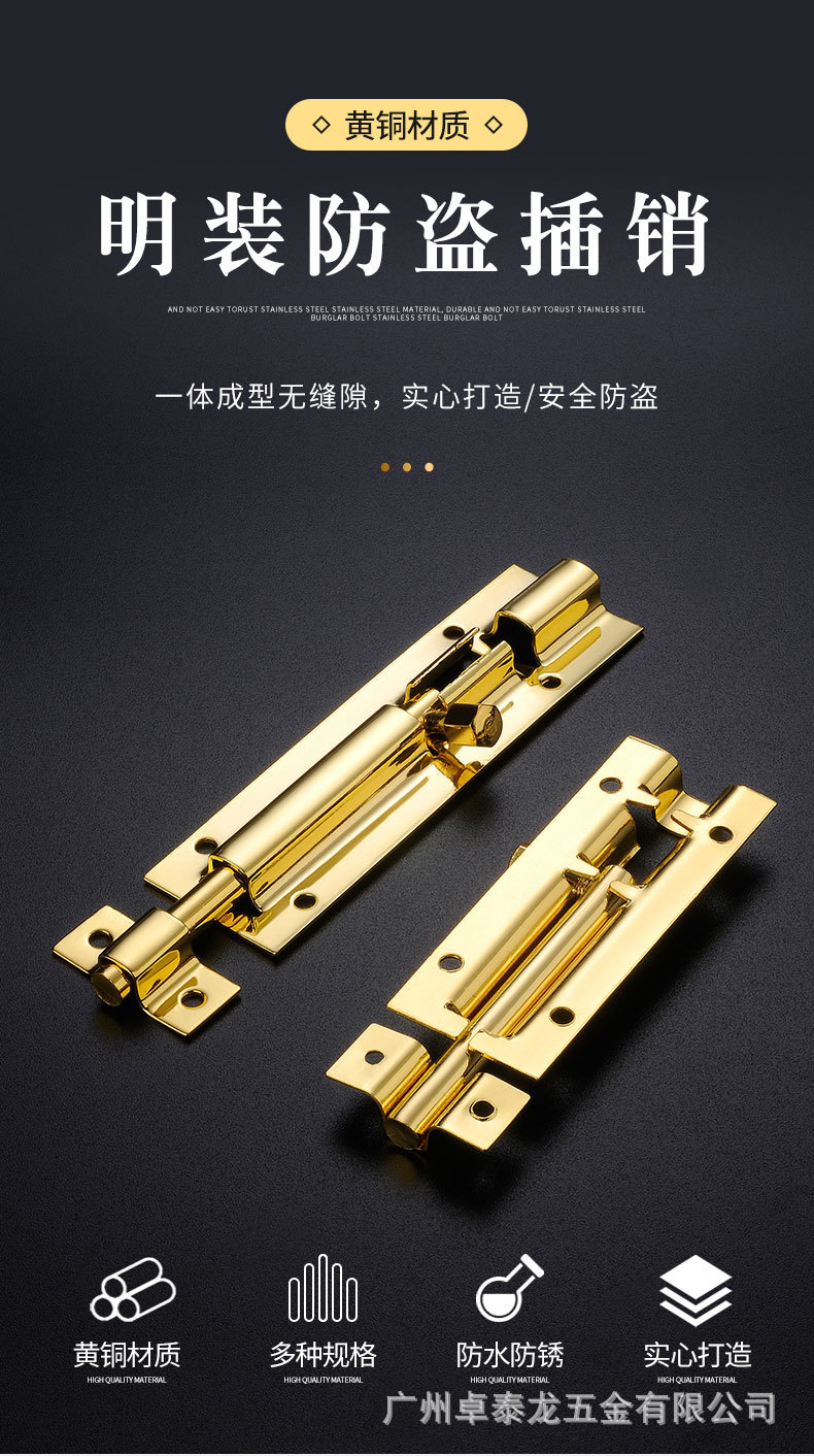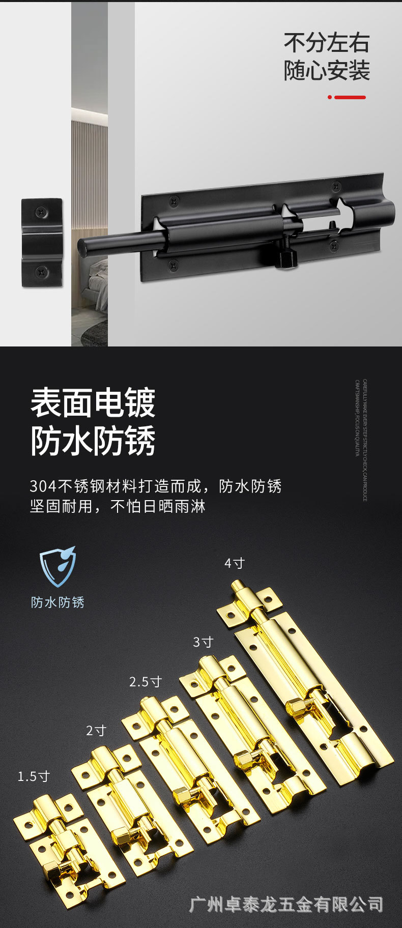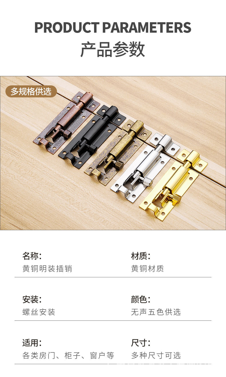 1寸6寸不锈钢木门窗防盗插销锁加厚明装老式门小方不锈钢插销门栓