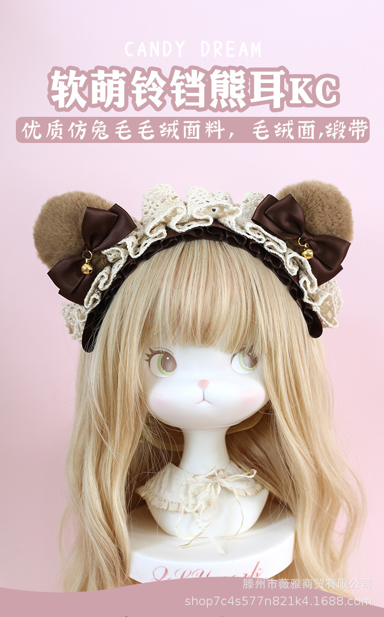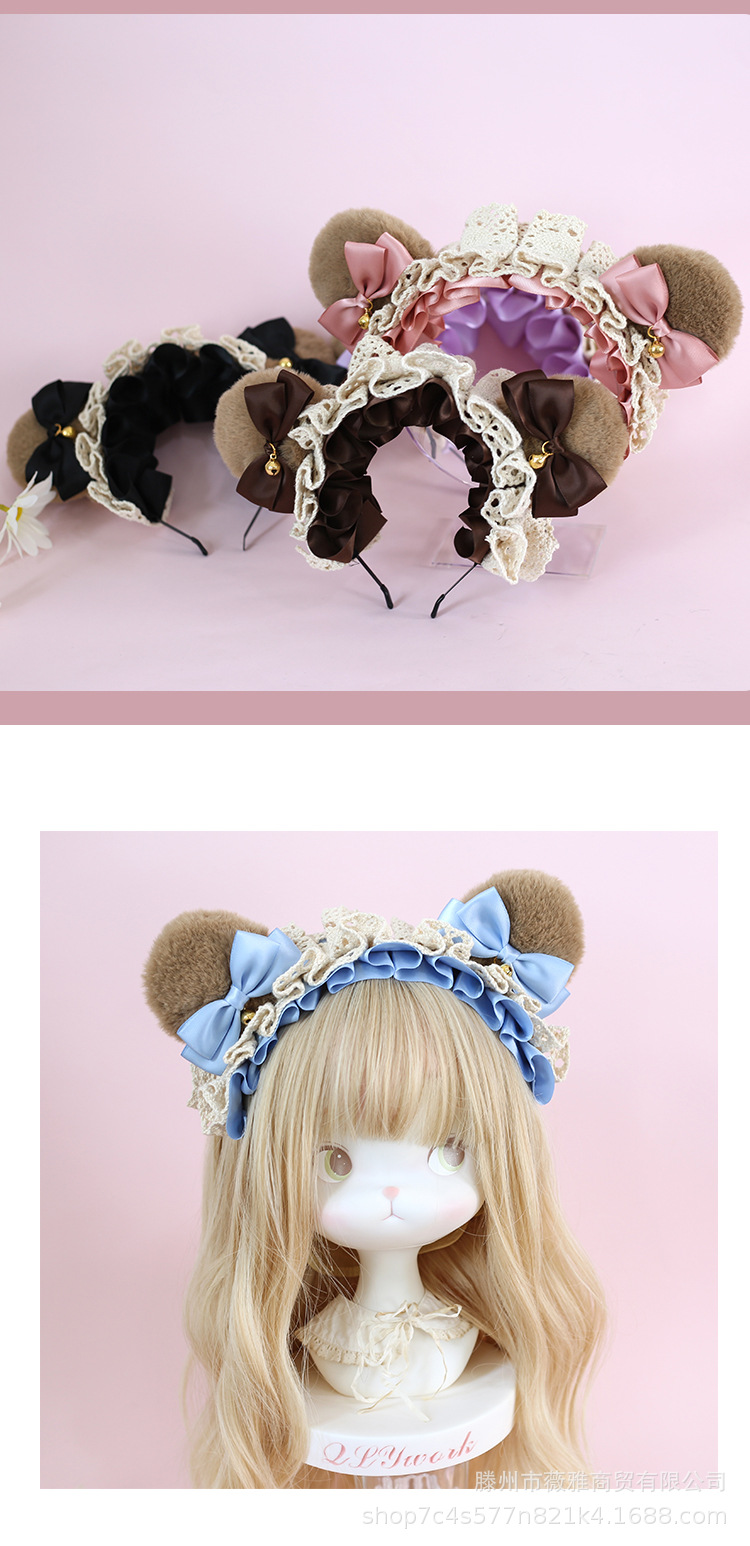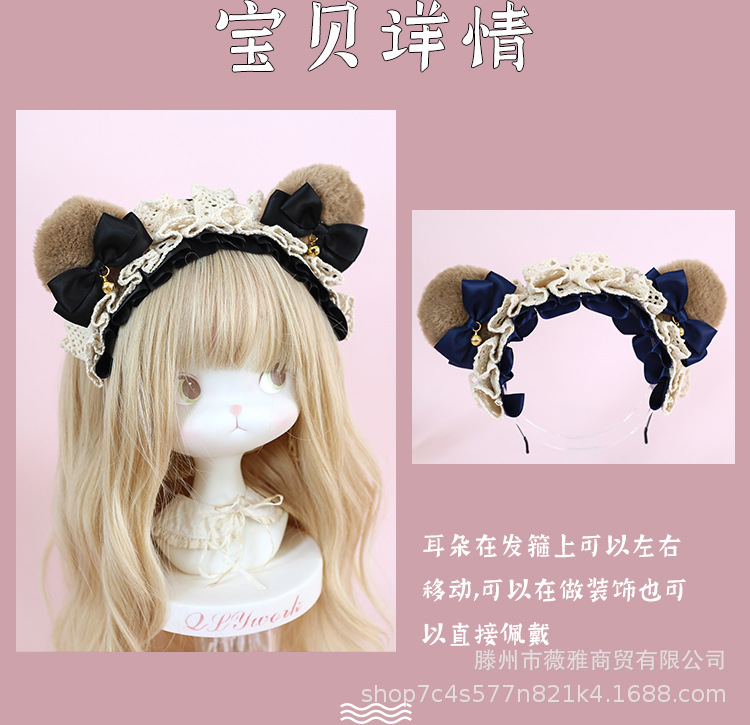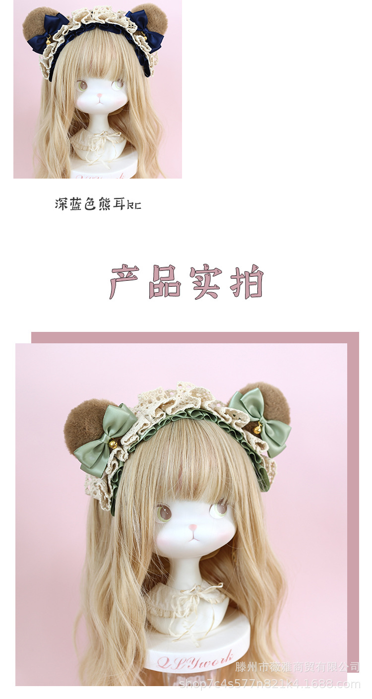 Cos漫展茶会lolita髪飾りぬいぐるみ熊耳ヘアバンド日系少女熊耳ヘアアクセサリー