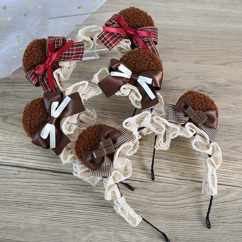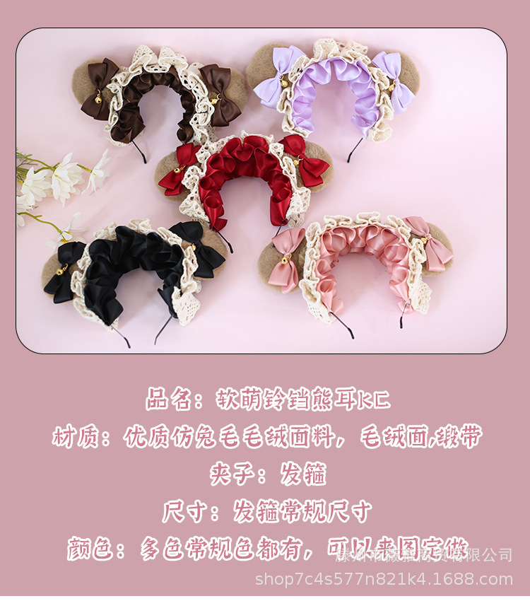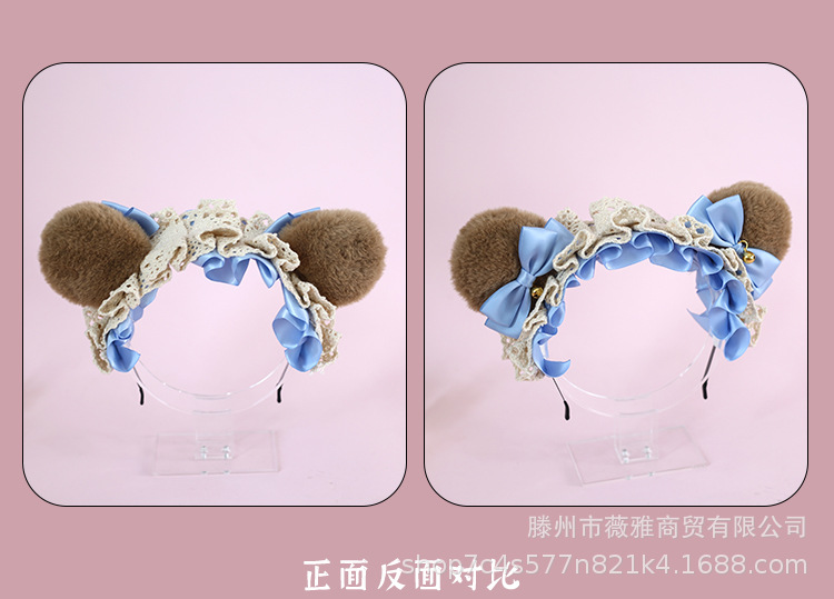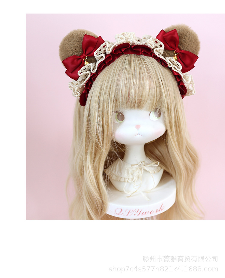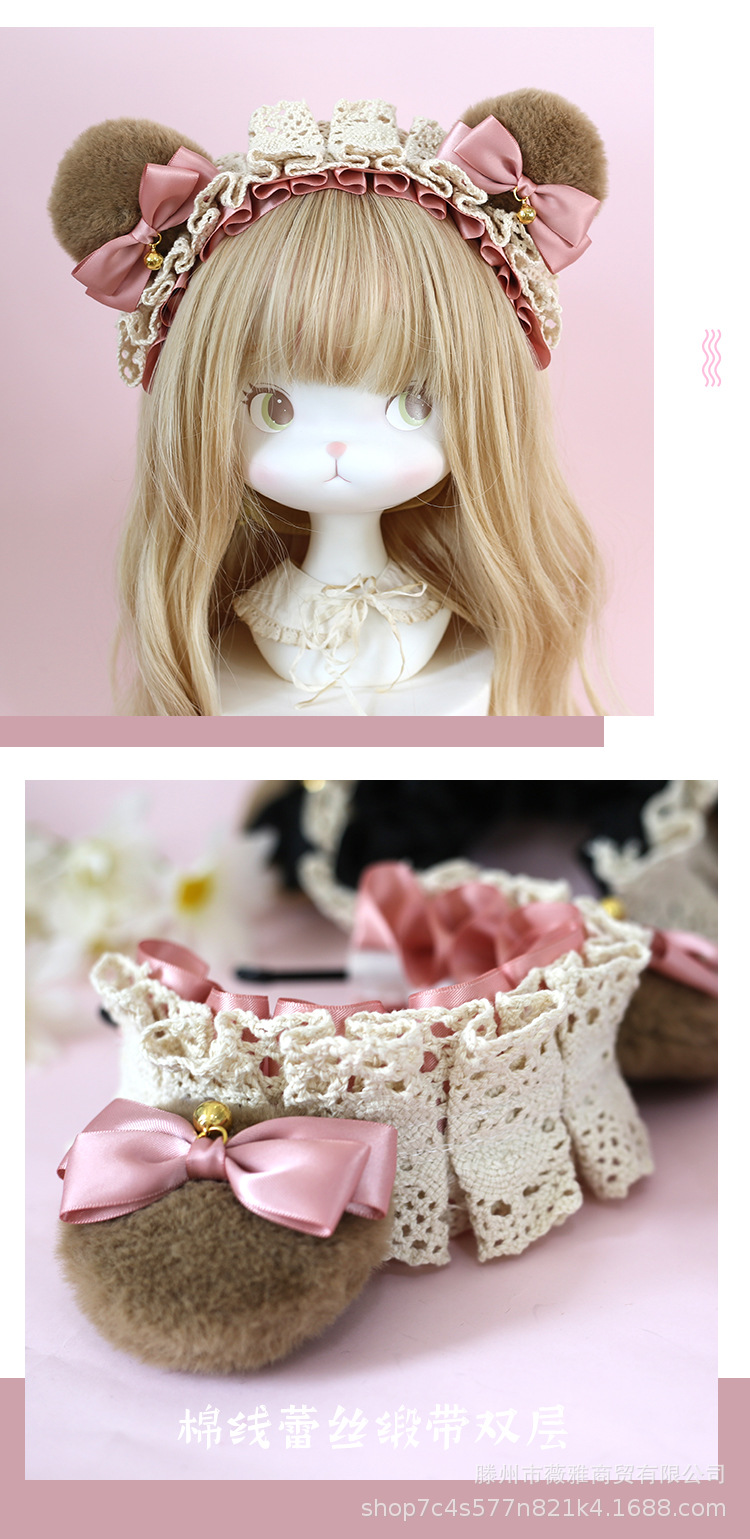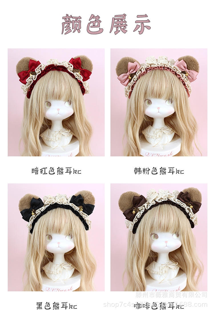 Cos漫展茶会lolita髪飾りぬいぐるみ熊耳ヘアバンド日系少女熊耳ヘアアクセサリー