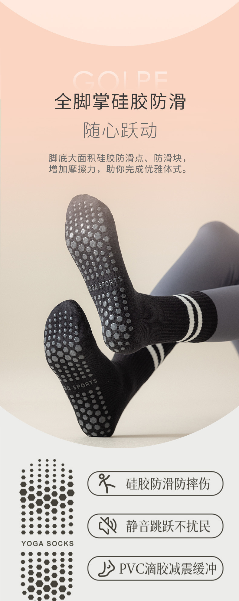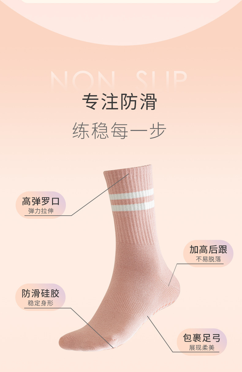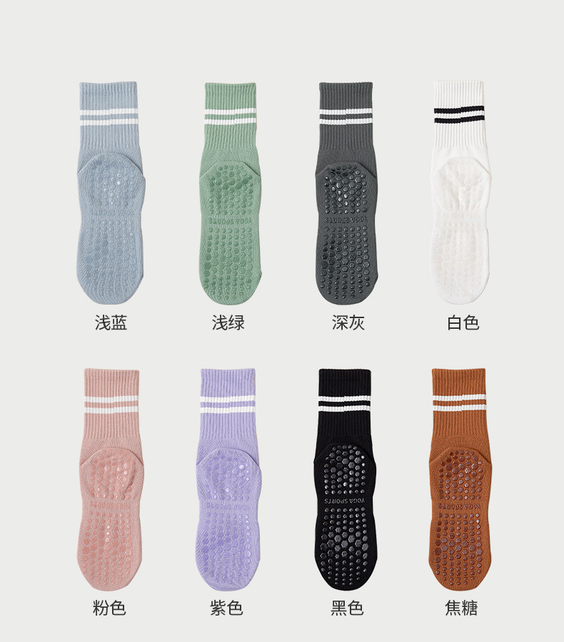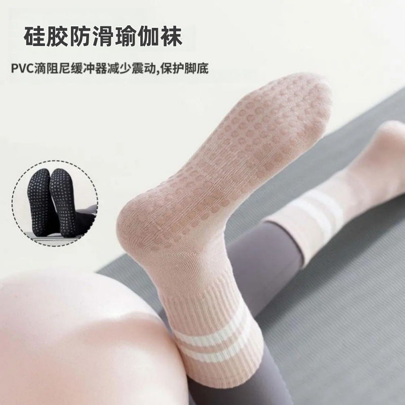 瑜伽防滑袜子女舞蹈蹦床普拉提健身中筒袜室内减震运动瑜伽袜