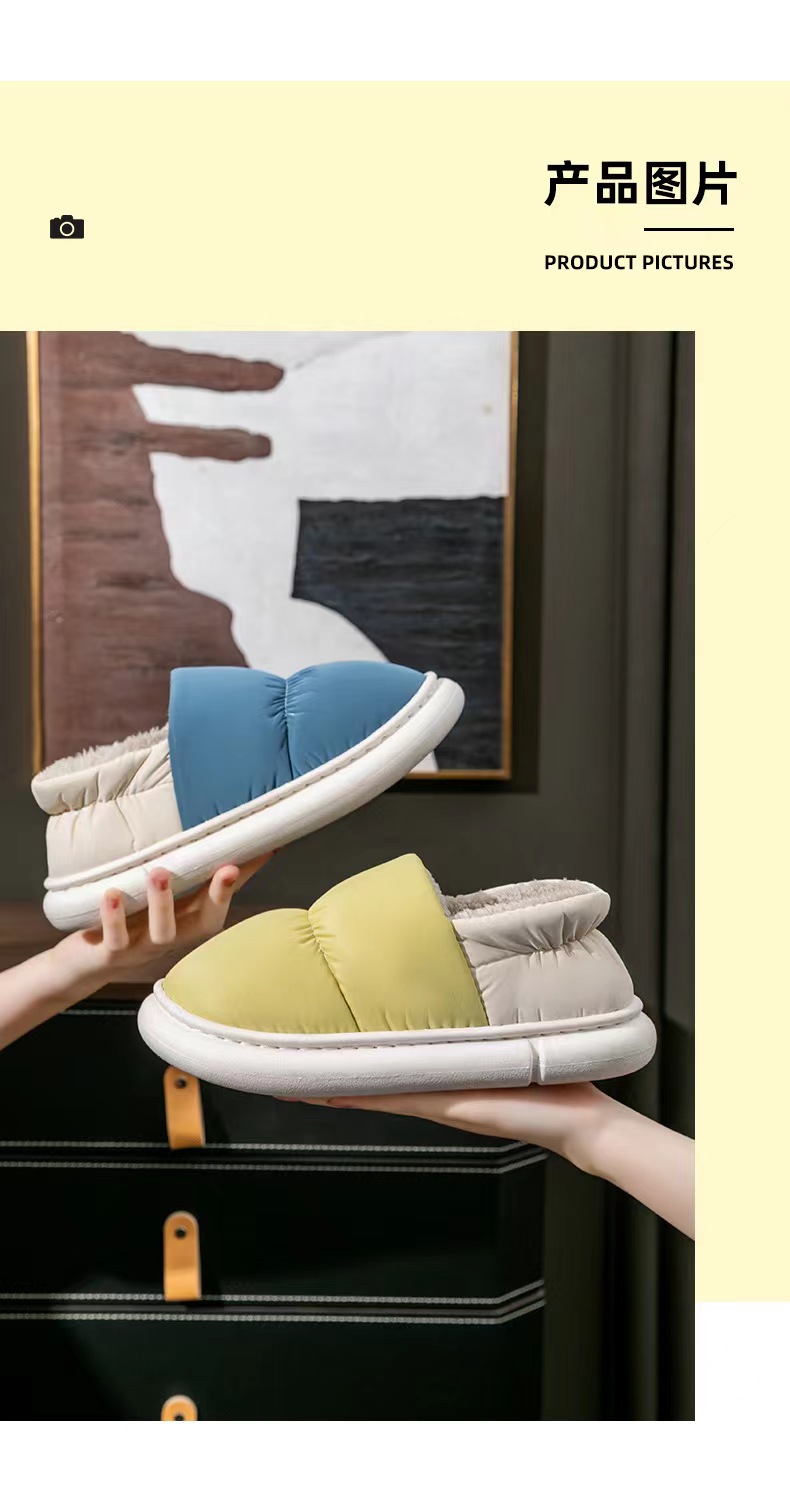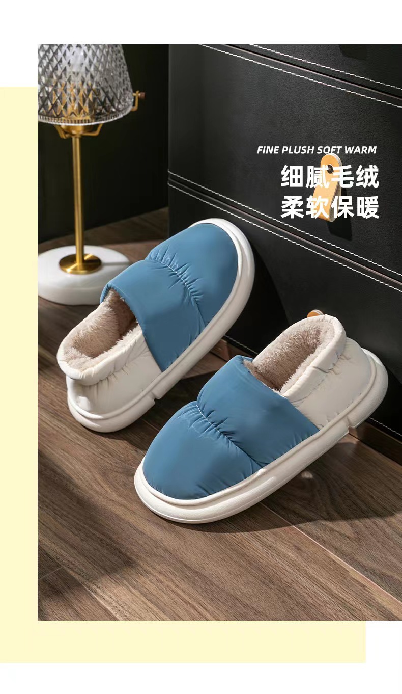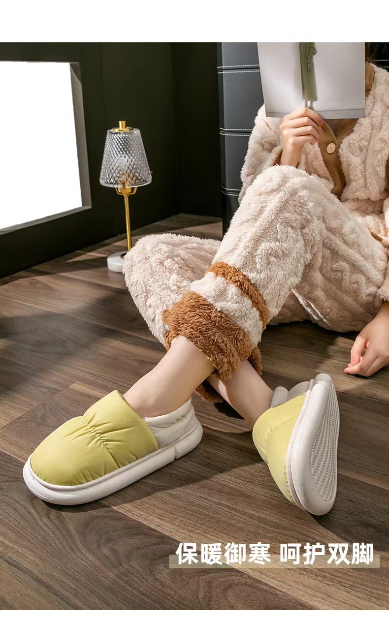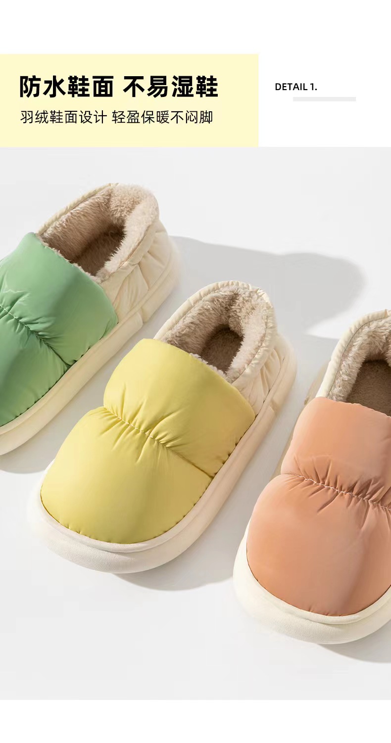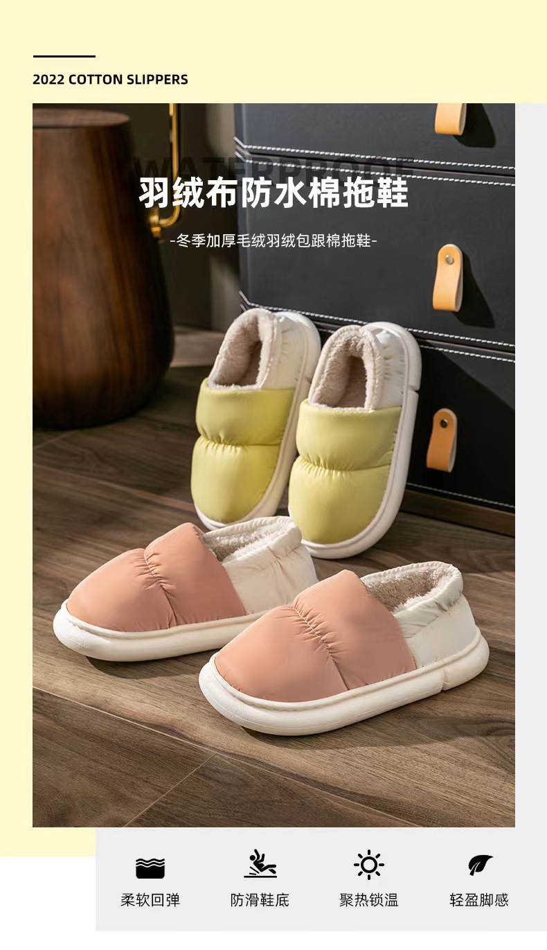羽绒棉拖鞋女秋冬季包跟防滑室内家居家用加厚保暖情侣外穿棉鞋男
