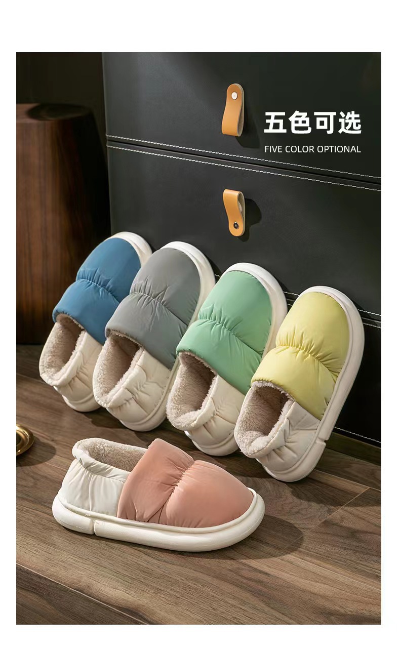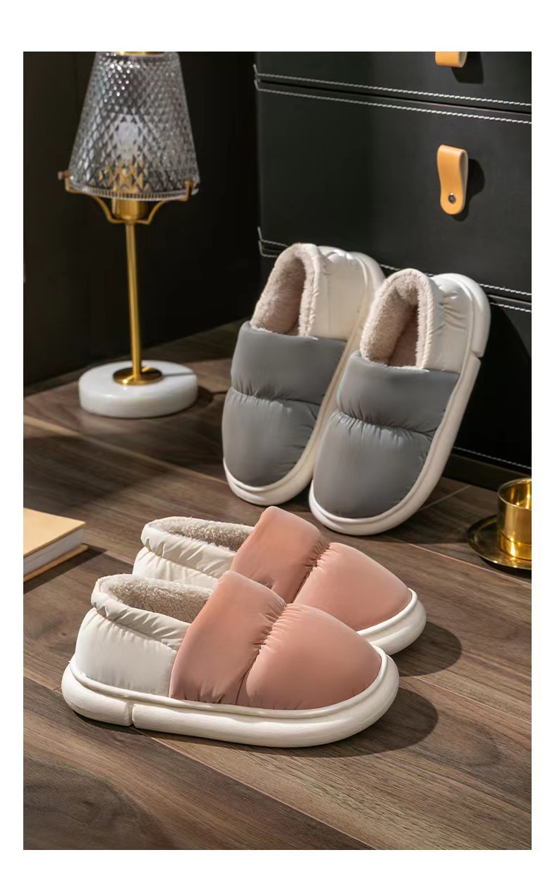 綿のスリッパと家のスリッパの冬の女性の防水のダウンジャケットの厚い靴の滑り止めの保温綿の靴の男性の靴の卸売り