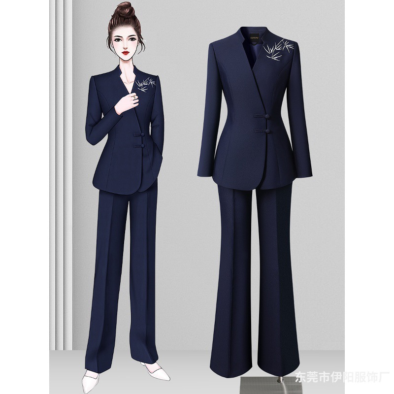新中式西装套装女2025新款国风刺绣职业西服外套高端售楼部工作服