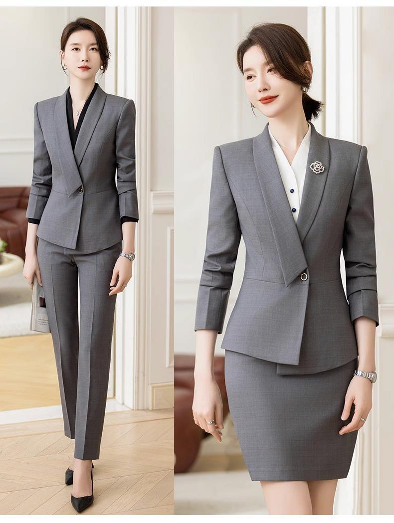 灰色西装套装女秋冬正式场合气质通勤面试高端职业西服正装工作服