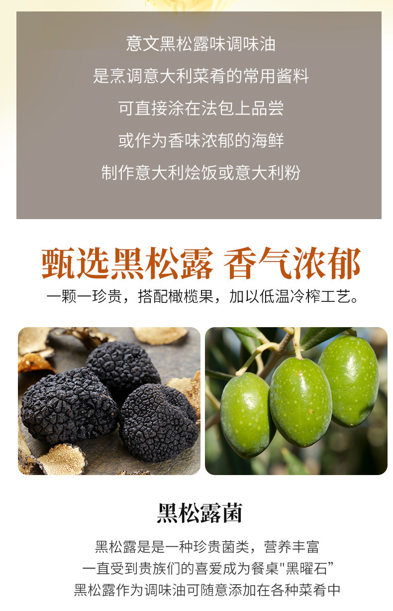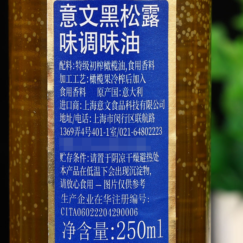 パッケージ仕様 黒松露味調味油250ml,ホワイトトリュフ味調味油250ml