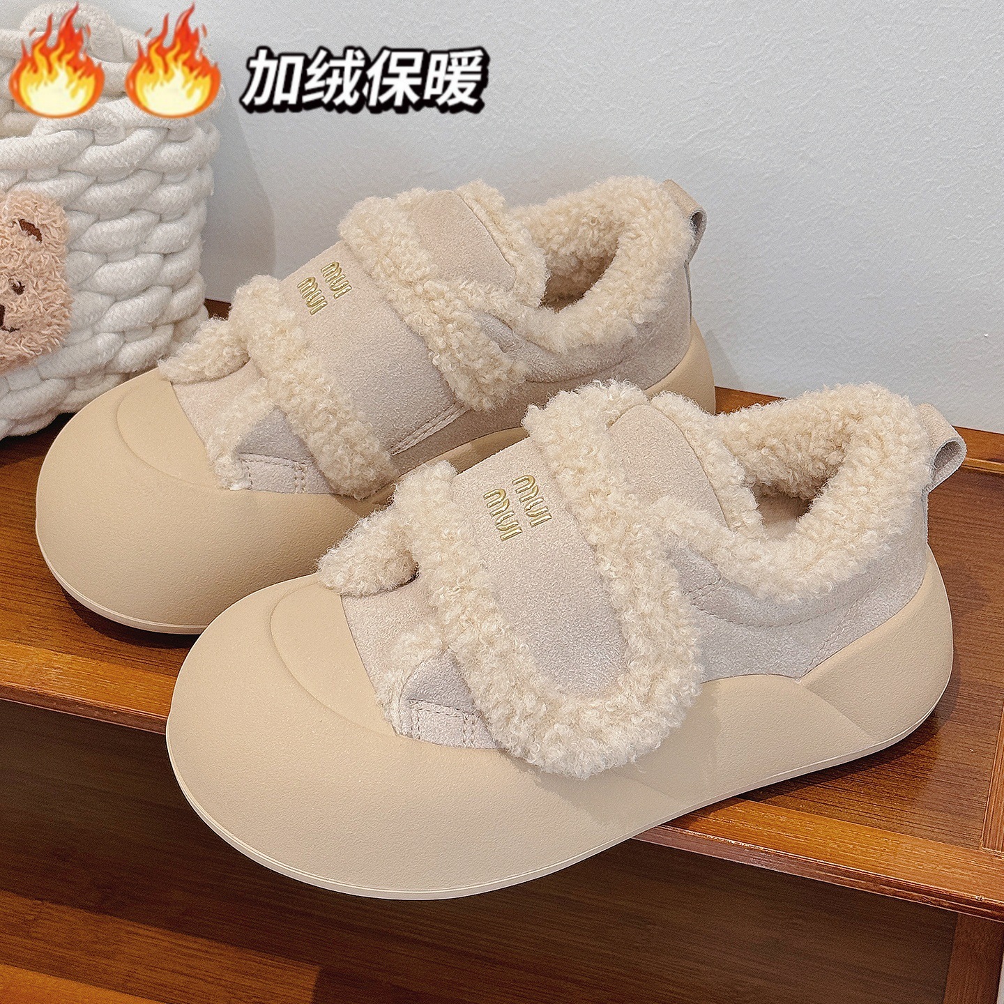 2025秋冬新款加绒女鞋魔术贴面包鞋女厚底板鞋保暖棉鞋百搭休闲鞋