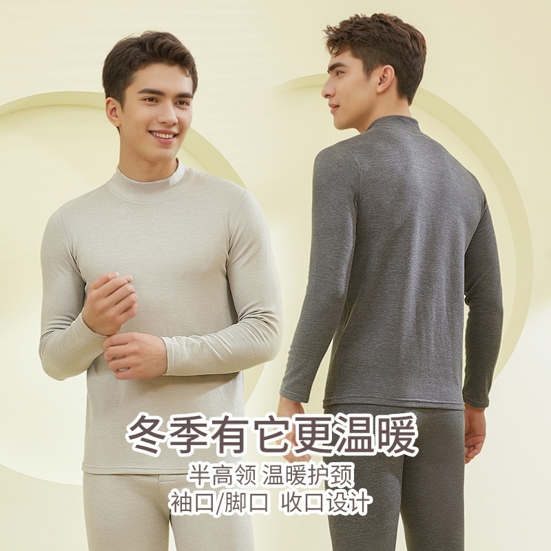 内衣男羊毛蚕丝加绒冬季大码半高领德绒秋衣秋裤男士套装发热防寒
