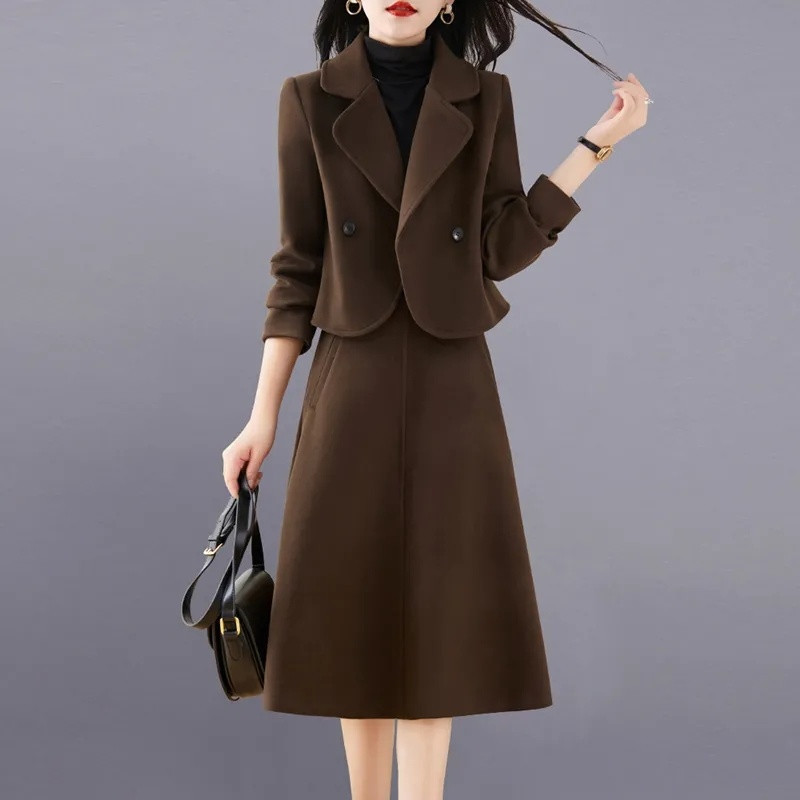 毛呢外套半身裙两件套女春秋新款高级感时尚气质洋气穿搭套装