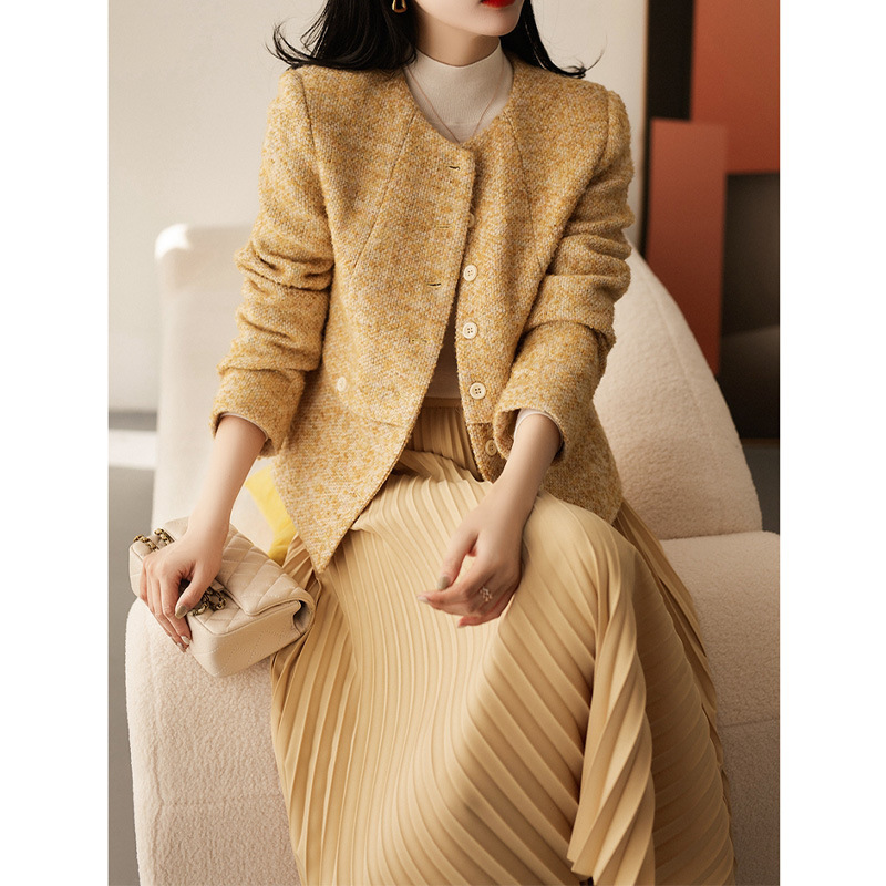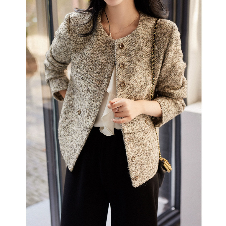 2025秋季新款小香风立领短毛呢外套女时尚洋气减龄修身短款上衣