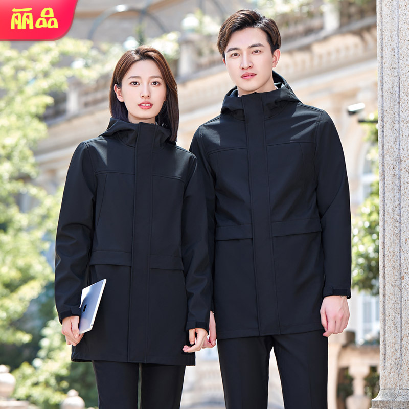 2022冬服新品厚手ダウンジャケット作業服男女同型黒色厚手フード付きパーカー