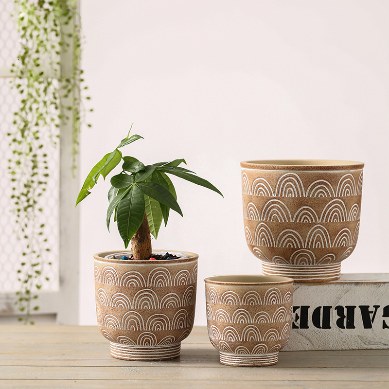 赤陶土植木鉢北欧は古い復古風の重ね波紋素焼き通気性多肉緑植小樹花園バルコニー磁器