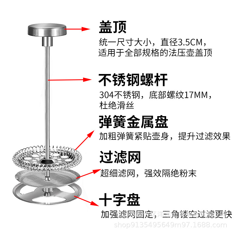 打奶器不锈钢法压壶配件冲茶器盖子过滤片咖啡手冲壶网片咖啡滤网