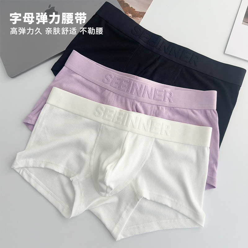 罗纹新款男士平角内裤人棉四角短裤透气亚马逊速卖通外贸欧美大码