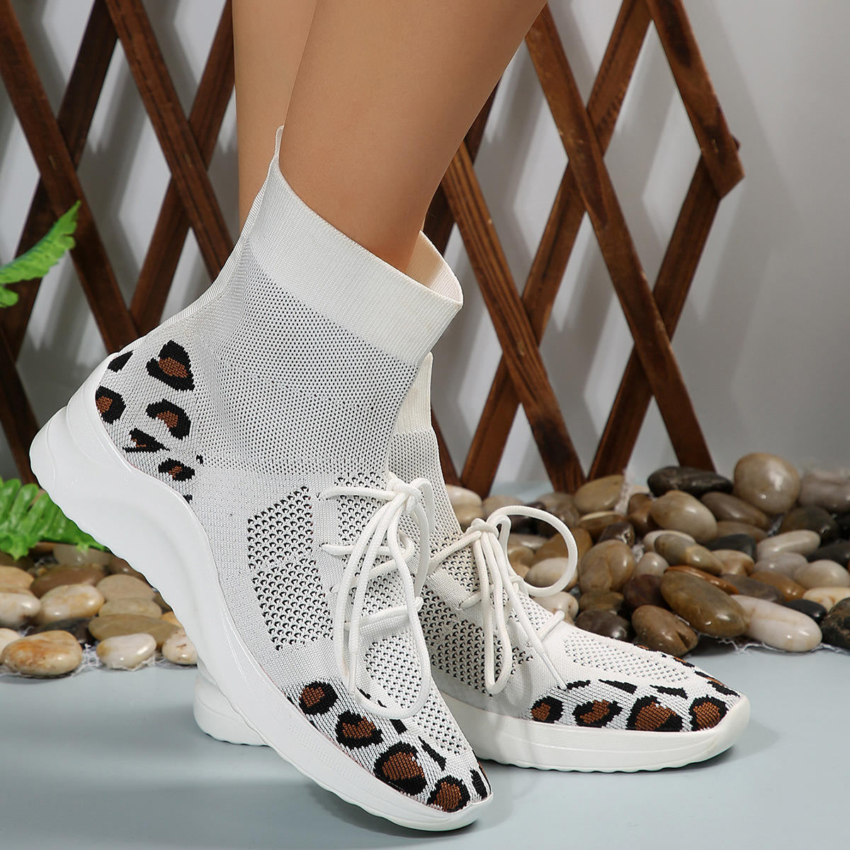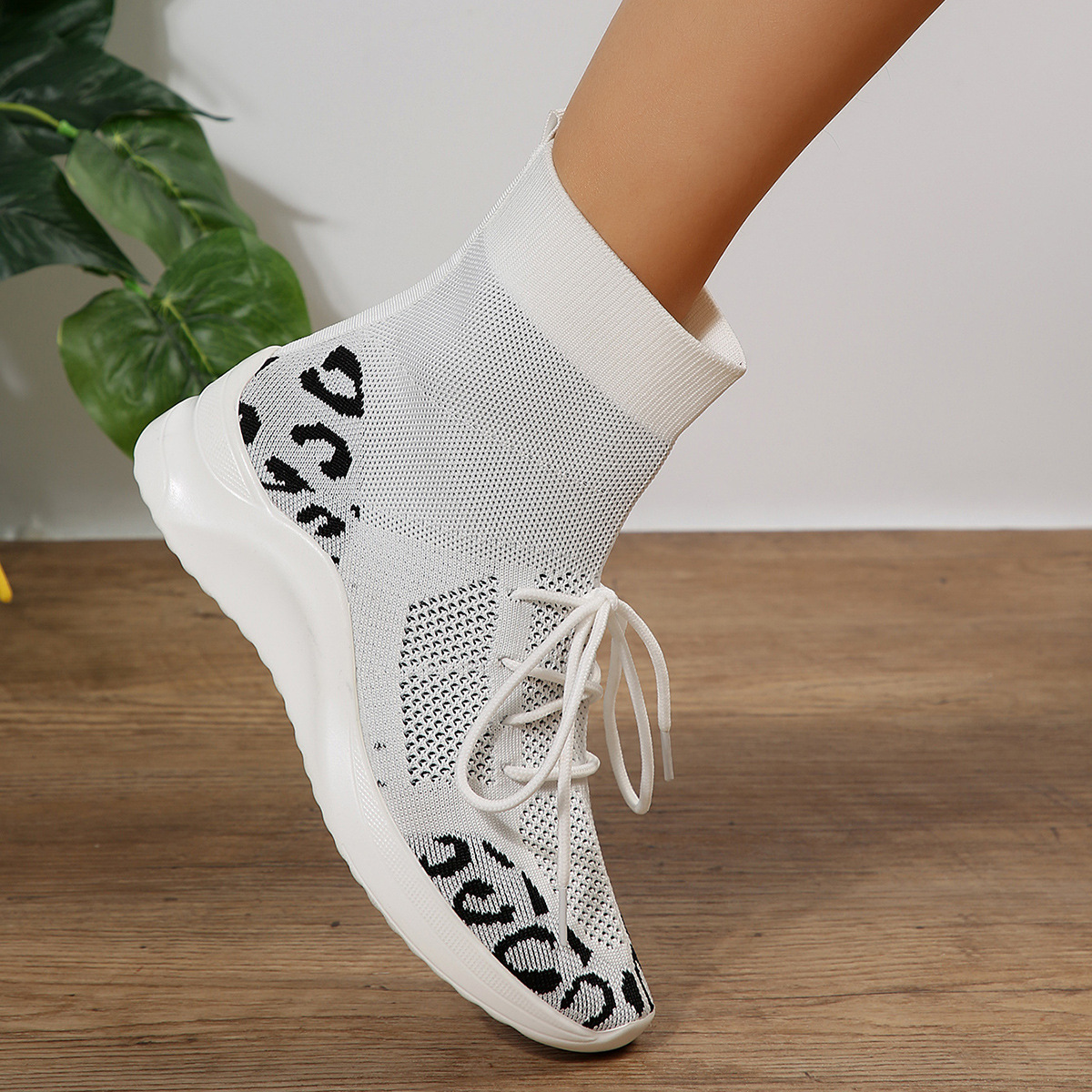 クロスボーダーの大きいサイズの女性のカジュアルな飛織の単靴2023秋のファッションの新型の通気性の丸い頭のひもの靴の対外貿易