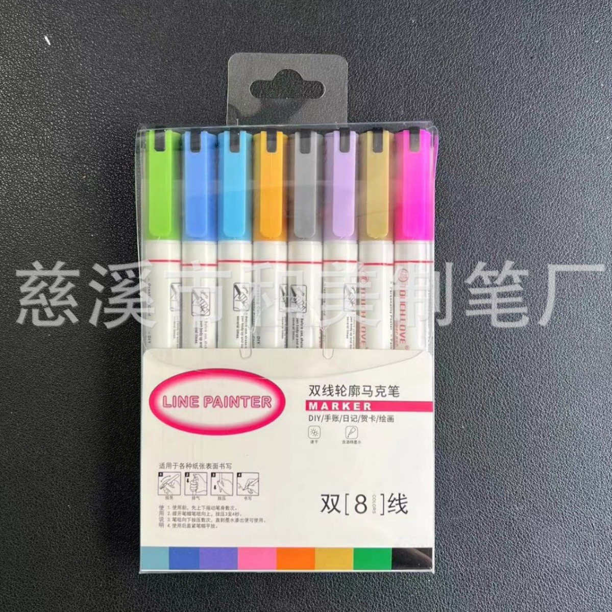 シングルヘッド二重ラインマークペン輪郭ペンdiyグリーティングカードは、2本のラインメーカー卸売り多色オプションを作ることができます