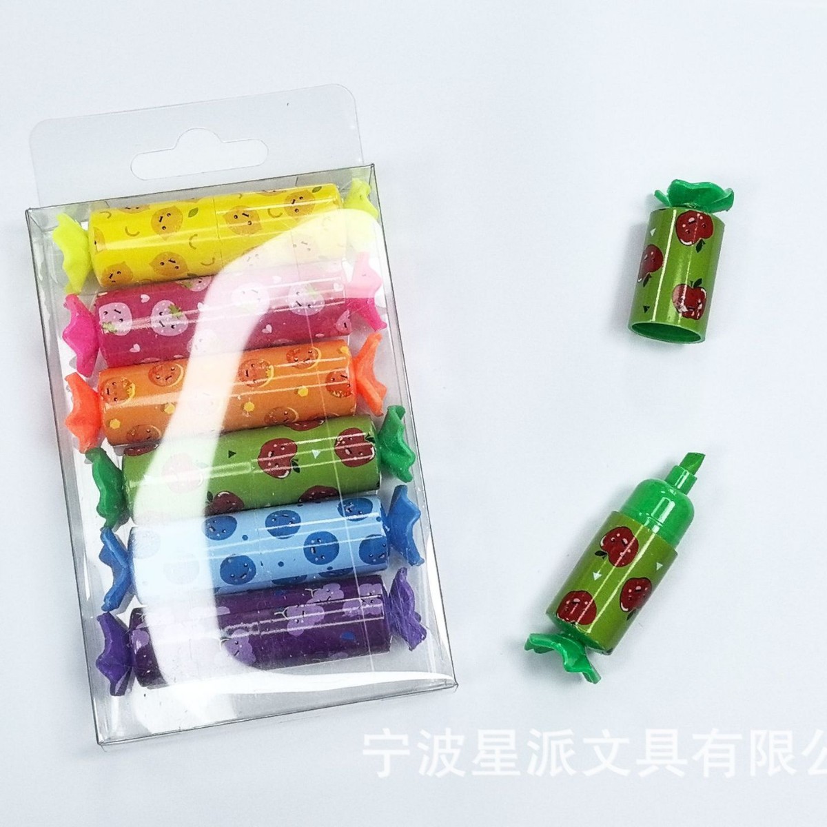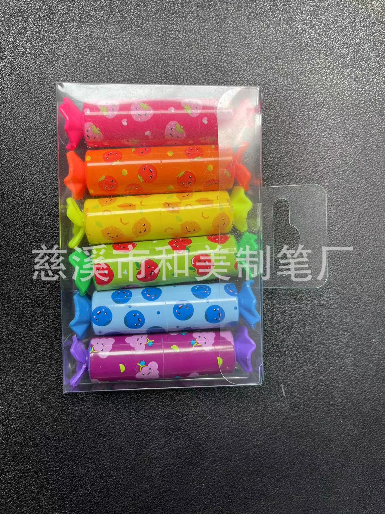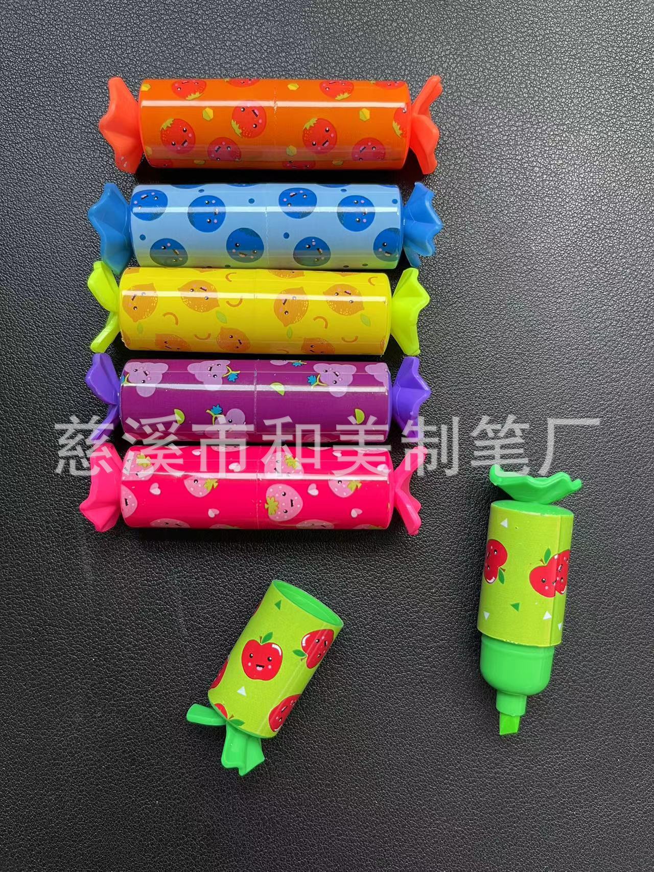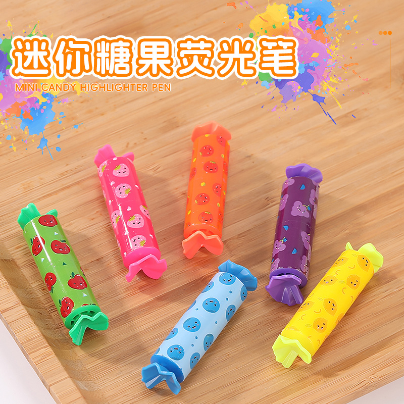 跨境专供6色几何花膜糖果造型荧光笔迷你荧光笔礼品用