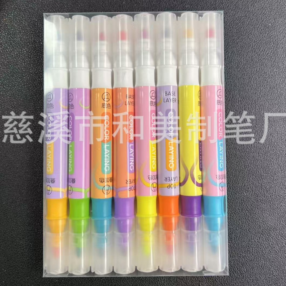 スポット人気メーカー直販8色畳みペン蛍光ペン水彩ペン卸売り斜頭児童絵画マジックペン