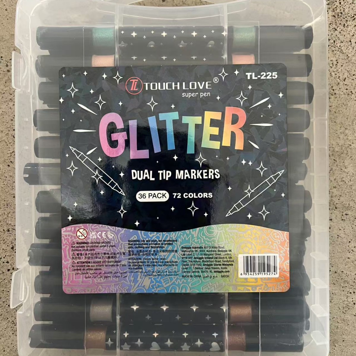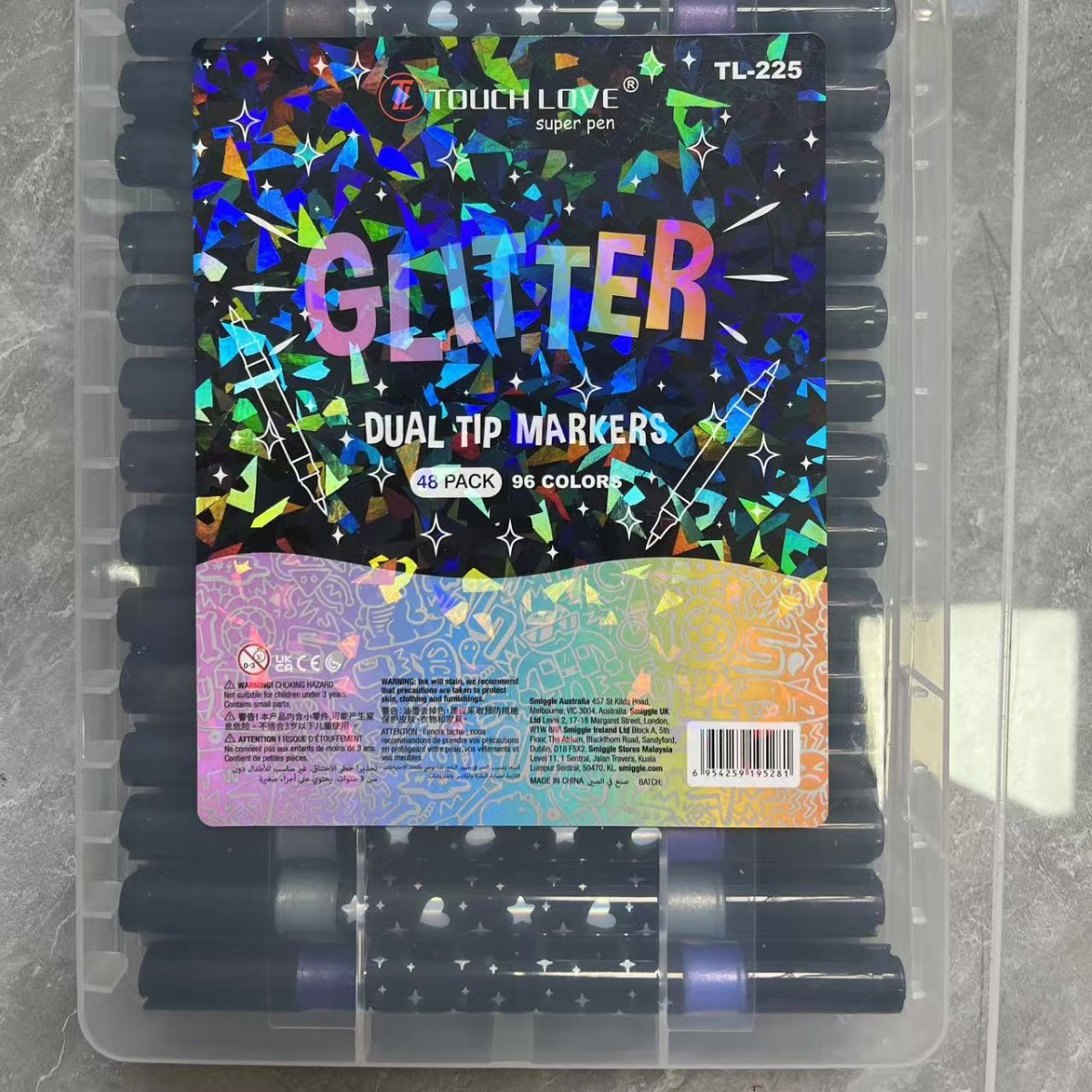 【両面グリッターマーカー】パールグリッター 子供・学生向け 手描きハンドブック カラージェー 流砂 96色