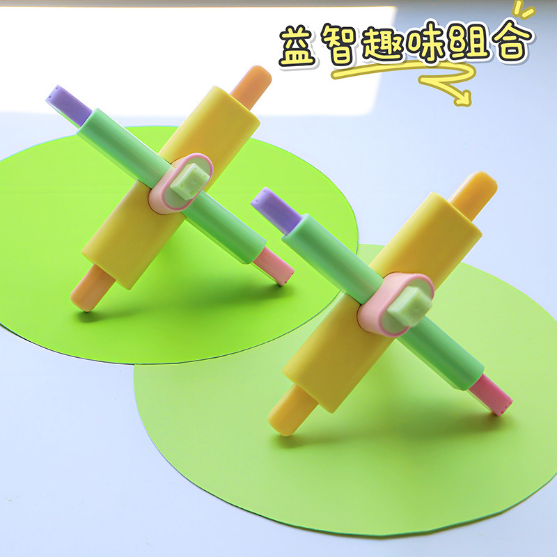 厂家批发新款鲁班锁双头荧光笔学生益智文具六色礼品笔可印刷logo