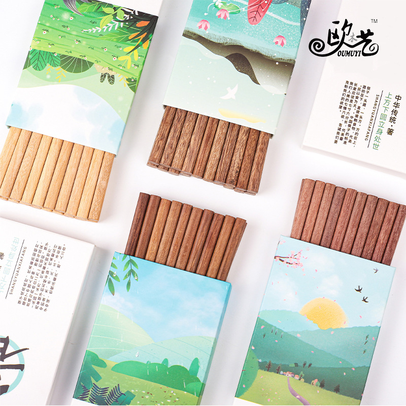 家庭用手羽木箸セット卸売り原木箸紅檀木実木箸礼箱彫刻ロゴ